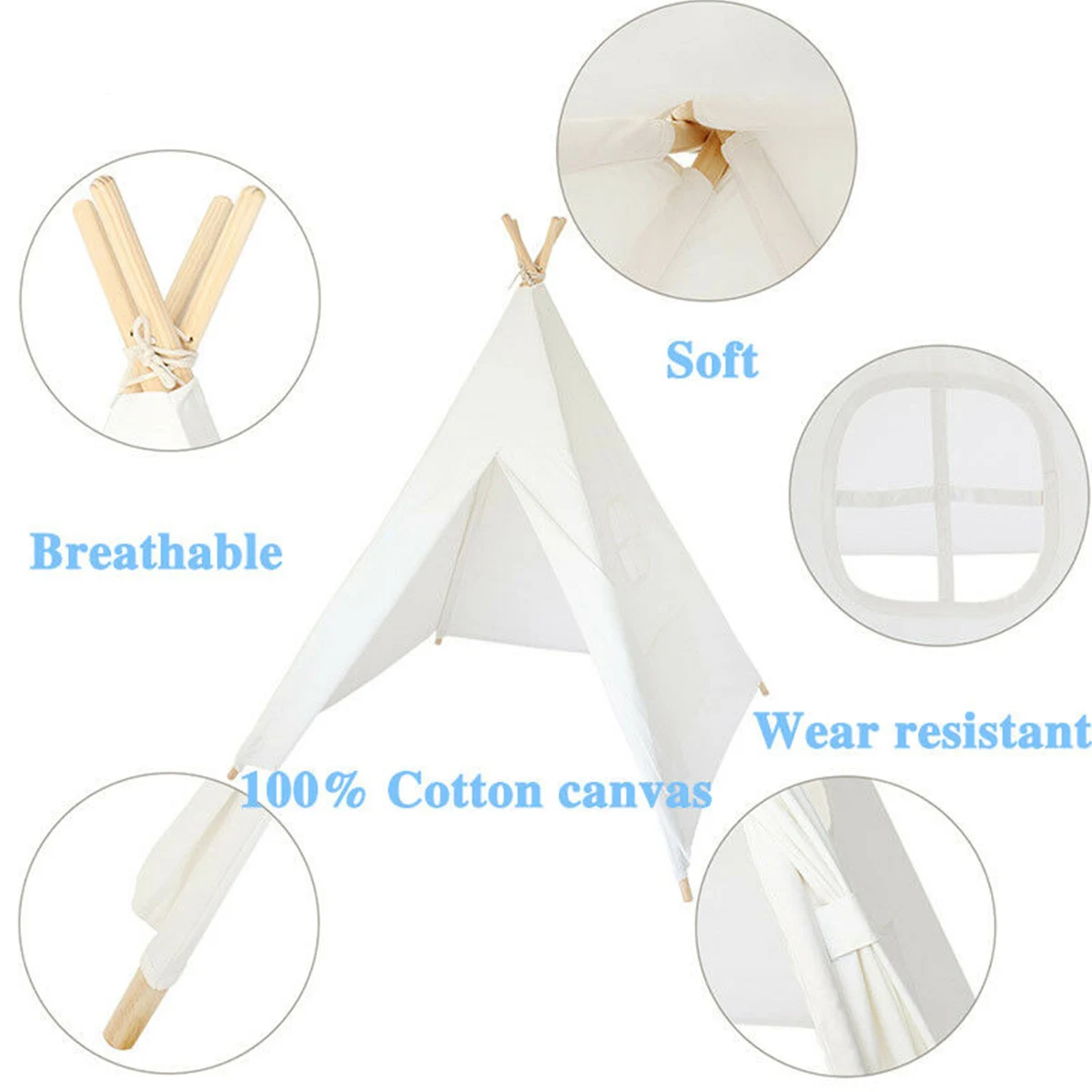 Технические характеристики: Материал: дерево + хлопок Цвет: синий/зеленый цветок/розовый/Цветочный цвет/белый Размер: как показано на картинке Особенности: -Красивая Игровая палатка для детей -Изготовлен из прочного и качественного хлопкового холста -Гладкая отделка деревянных палок -Окно сбоку для легкой проверки детей Посылка включает в себя: Я x вигвама 8x деревянные палки 4 x разъем 1 x арматурного инструмента 4 x силиконовая втулка (Примечание: в комплект не входит напольный коврик) Примечание: 1. Замеры сделаны вручную, поэтому возможны 0,5-1 дюйм разницы в связи с тем, что измерения выполнены вручную. (1 дюйм = 2,54 см) 2. Цвет фактического товара может немного отличаться от изображения из-за различий в экране компьютера, спасибо за понимание.