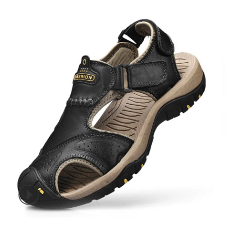 Кожаные сандалии; Мужская обувь из воловьей кожи; Новая летняя пляж...