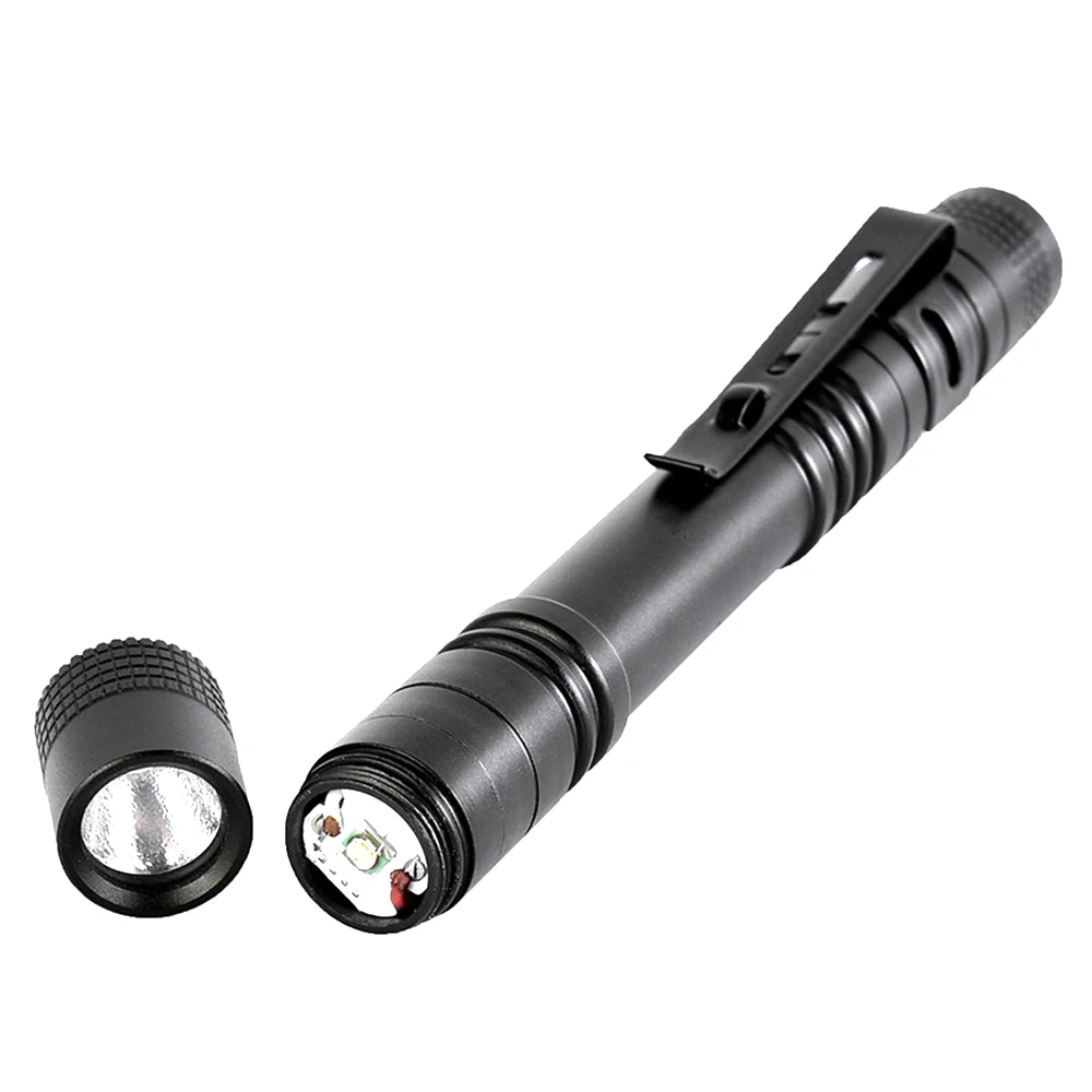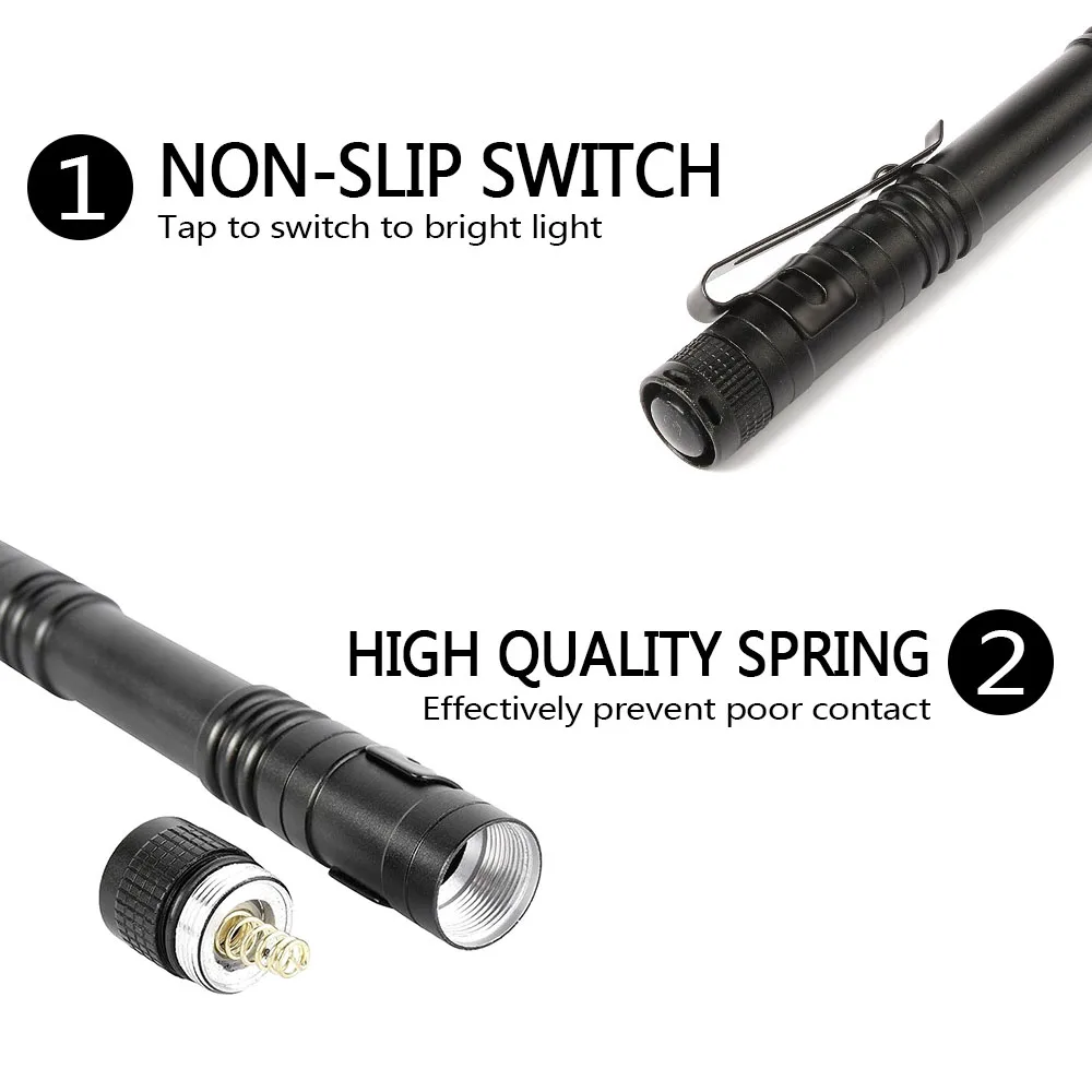 1. Супер яркий: Wth CREE XPE светодиодный, светильник ручки может выкачивать до 300-500 люменов, которые работают с 1 или 2 батареями AAA (батарея не входит в комплект).