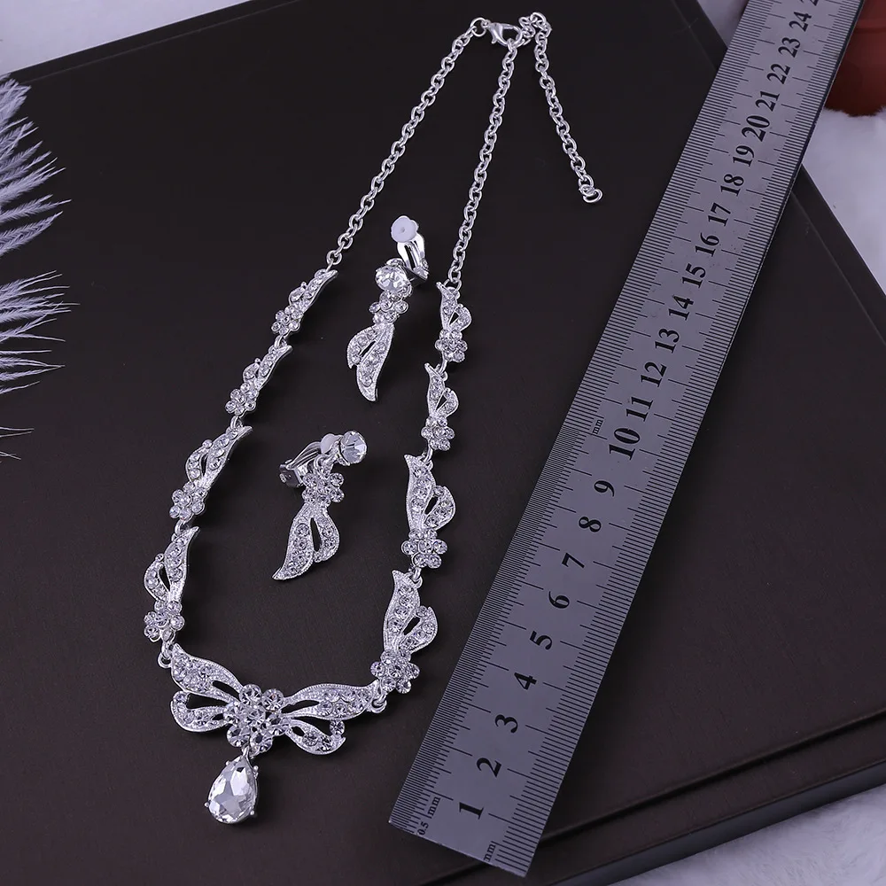 3 шт. стразы, Кристалл, Бабочка, Свадебные Ювелирные наборы, ожерелье, серьги, тиара, набор, Свадебные украшения для волос, африканские бусины, ювелирный набор