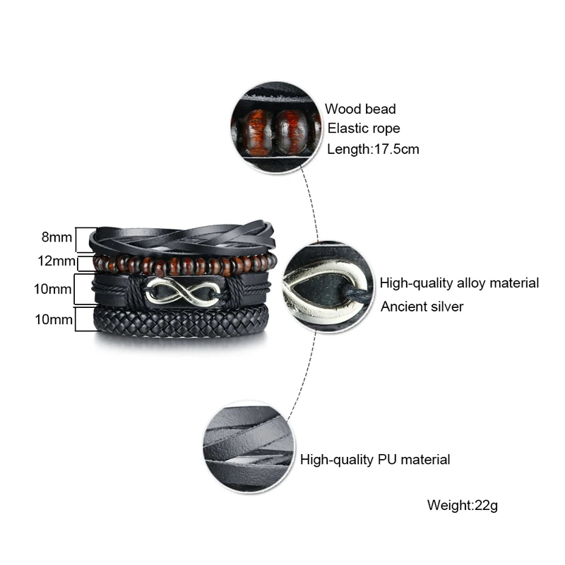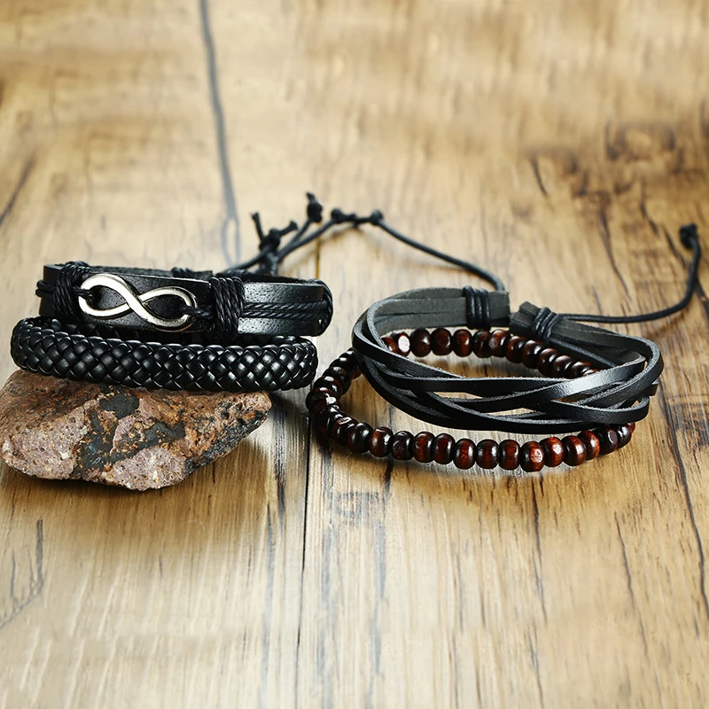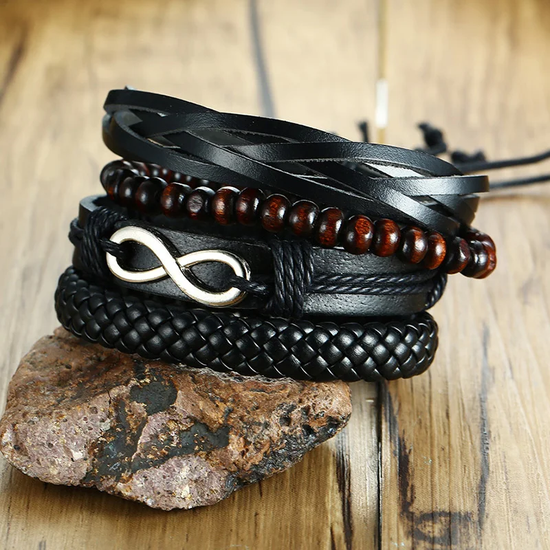 Набор мужских браслетов Vnox, 4 шт., кожаный браслет в стиле панк, черного и коричневого цветов
