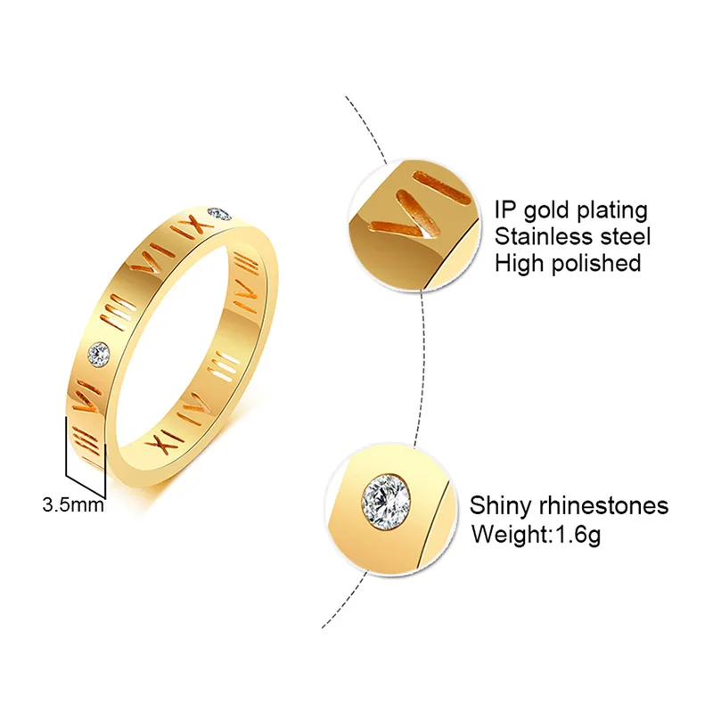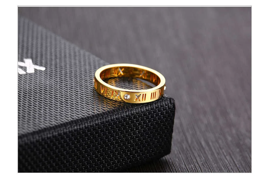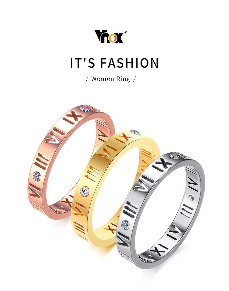 Женские тонкие кольца Vnox 3 мм с римскими цифрами ААА и фианитами