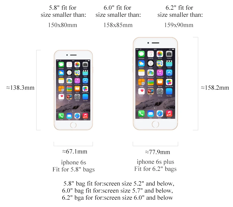 Размер S: для Iphone 7/6S/6/5C/5S, Samsung Galaxy S6, XIAOMI 5S, HUAWEI P7/P8/P9