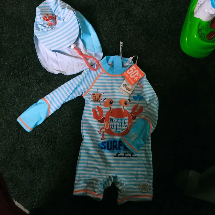 супер купальники! заказали размер 90 на ребенка 85 см , на дворе март , надеюсь летом влезет. качество отличное , все шовчики обработаны, ну прям ни к чему не придраться, себе бы такой заказала. думаю в отпуске будет самый мощный ребёнок. сначала указала размер больше, потом написала продавцу , что нужно по меньше, он положил который нужно. спасибо ему