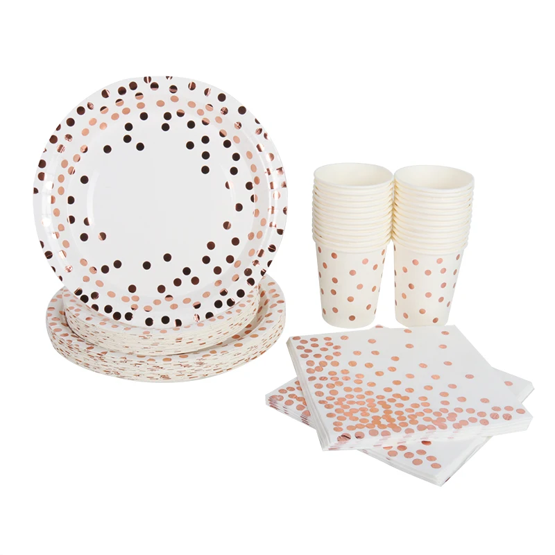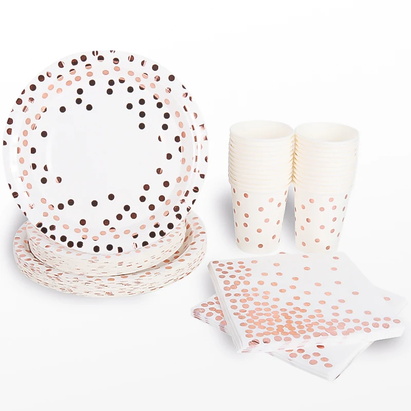Одноразовая посуда для вечерние, бумажный набор из розового золота,...