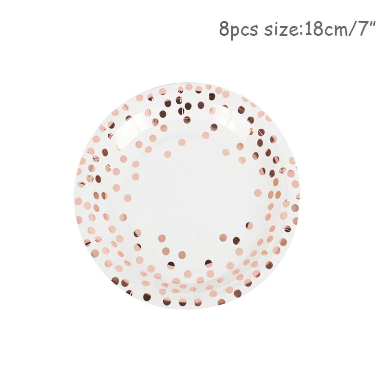8 шт., розовое золото, в горошек, одноразовые вечерние тарелки, скатерть для детей, для взрослых, для дня рождения, столовая посуда, свадебные декорации, вечерние скатерти