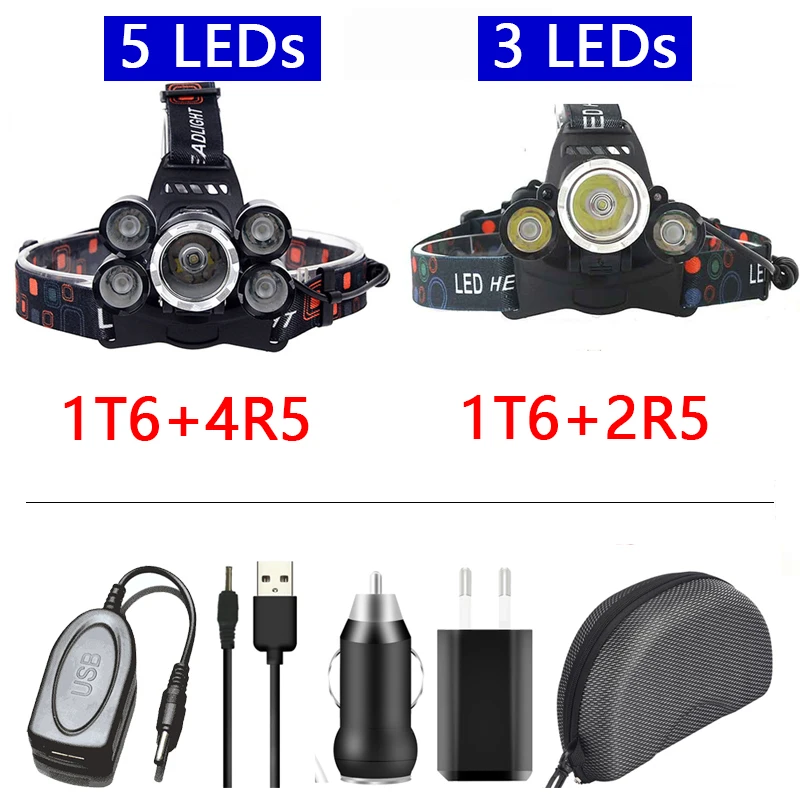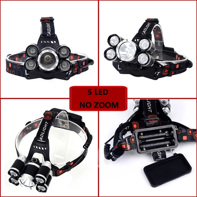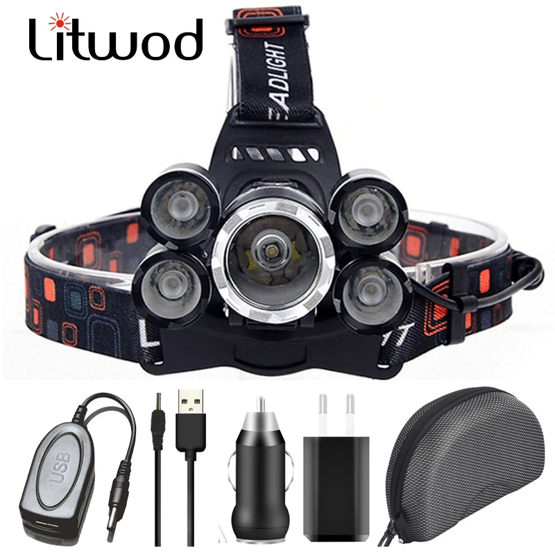 Налсветильник фонарь с Cree 5 Светодиодами XM-L T6, 4000 лм, налобный фонарь, налобный фонарь, фонарик, фонарик с аккумулятором 18650, лампочки с зарядным устройством переменногопостоянного тока, Litwod