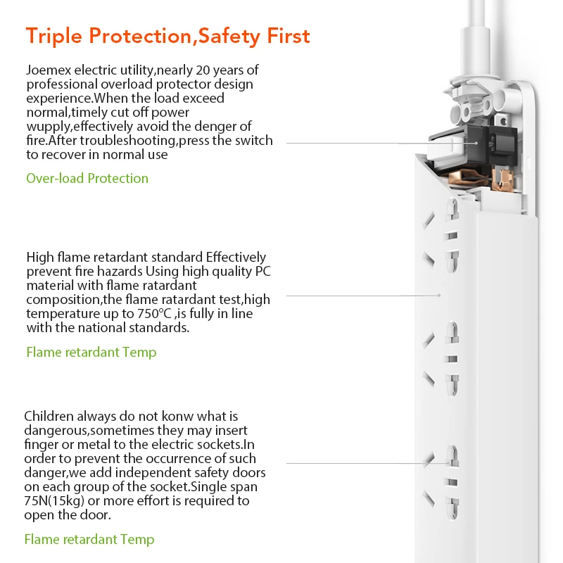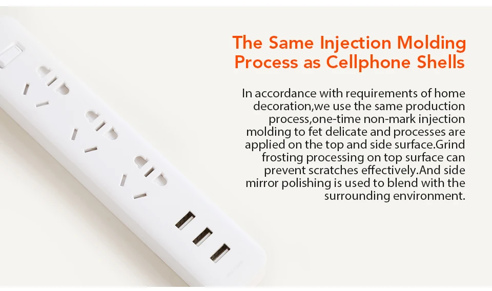 Для XiaoMi Power Strip с гладким белым дизайном, такой же тонкий, как пенал3 разъема питания и 3 usb-порта с функцией быстрой зарядки 2AФосфорная бронзовая Клемма, система подключения Медного СтержняНезависимые защитные двери для защиты детей от риска поражения электрическим токомТонкий и элегантный белый индикатор питания Светильник показывает рабочее состояниеКоэффициент конверсии высокой мощности до 82 процентовПорог защиты от утечки 20uAВысокий огнестойкий стандарт до 750 градусов по Цельсию100 - 220V Полный диапазон напряженияПрошел Пробный тест (5000 раз)Нескользящие подушечки на четырех ножкахШлифовка верхней поверхности глазури и зеркальная полировка на боковой поверхностиПриятный внешний вид и простой для домашнего использования и украшения