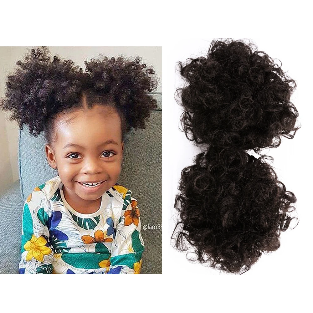 Пуховка для волос афро, кудрявый шиньон, конский хвост, короткий афро кудрявый хвост, синтетические аксессуары для детей прическа гулька волосы