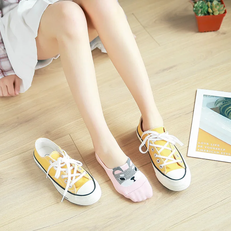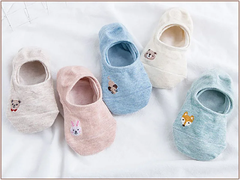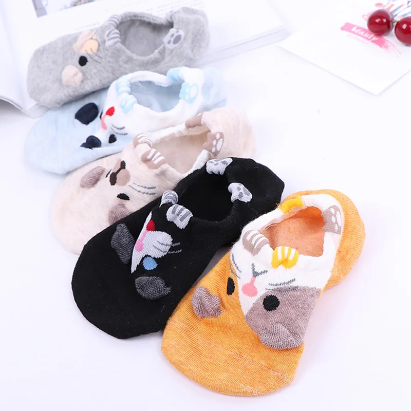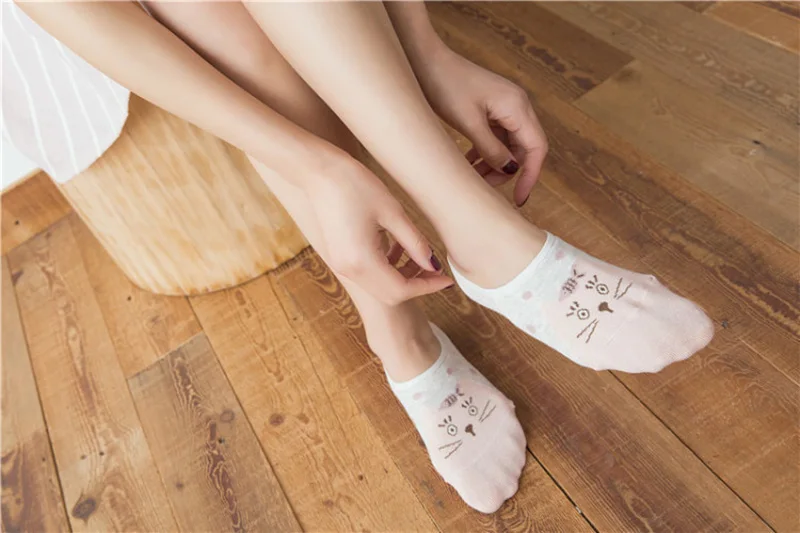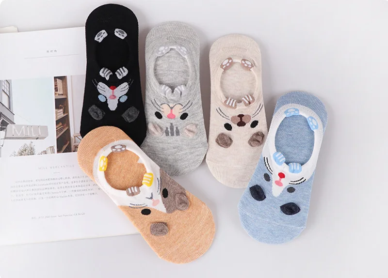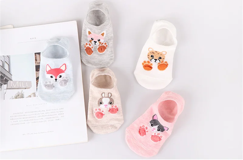 Носки-невидимки с животными в стиле Харадзюку женские, летние Смешные низкие носки-тапочки в Корейском стиле с кошкой, медведем, Кроликом, 10 шт. = 5 пар