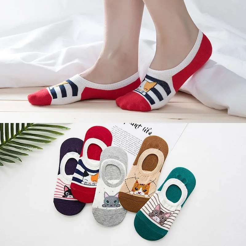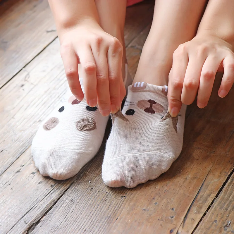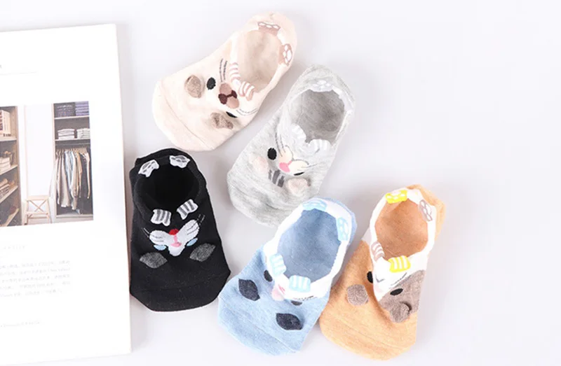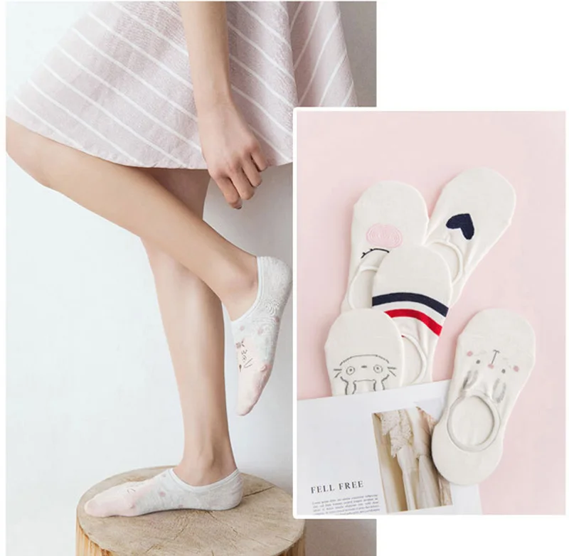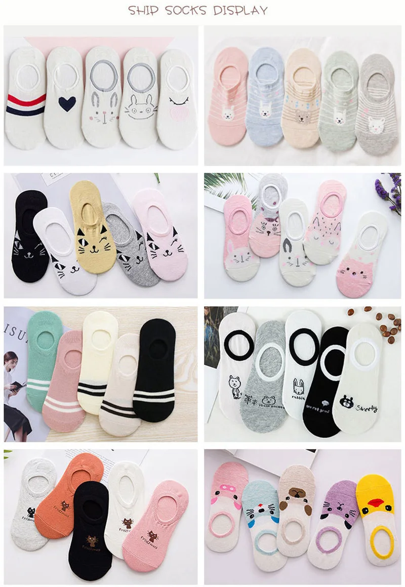 Носки-невидимки с животными в стиле Харадзюку женские, летние Смешные низкие носки-тапочки в Корейском стиле с кошкой, медведем, Кроликом, 10 шт. = 5 пар