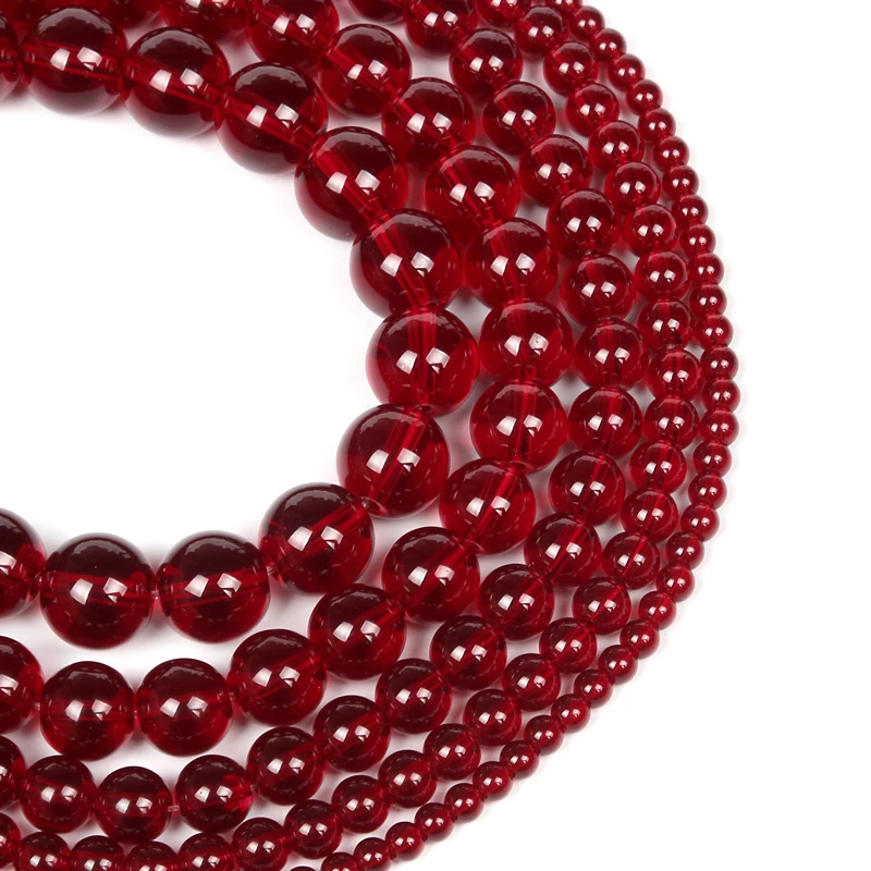 Натуральный камень, гладкие гранатовые красные стеклянные бусины, Очаровательные Круглые бусины россыпью, для самостоятельного изготовления ювелирных изделий браслеты, ожерелья, нити 4-12 мм