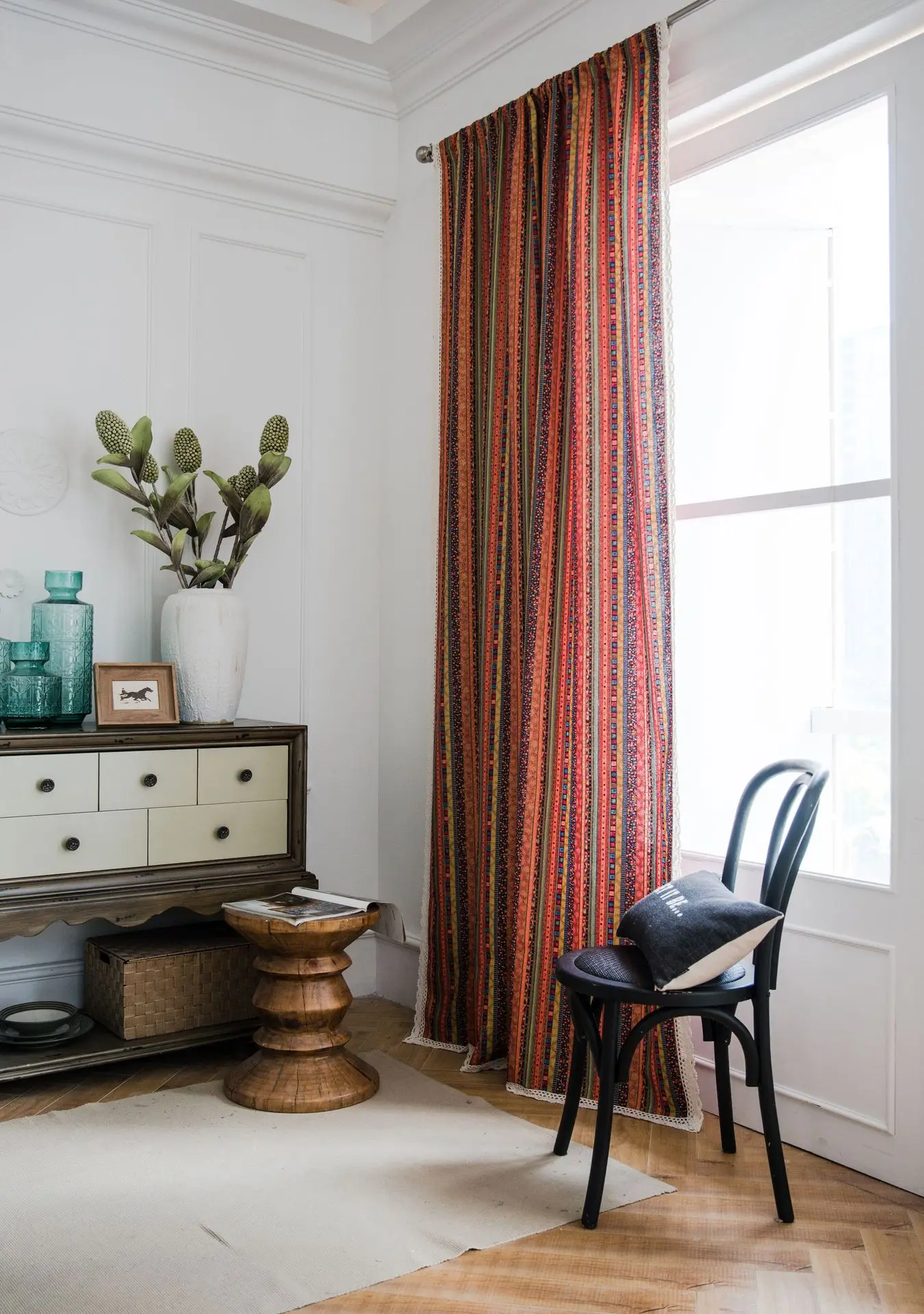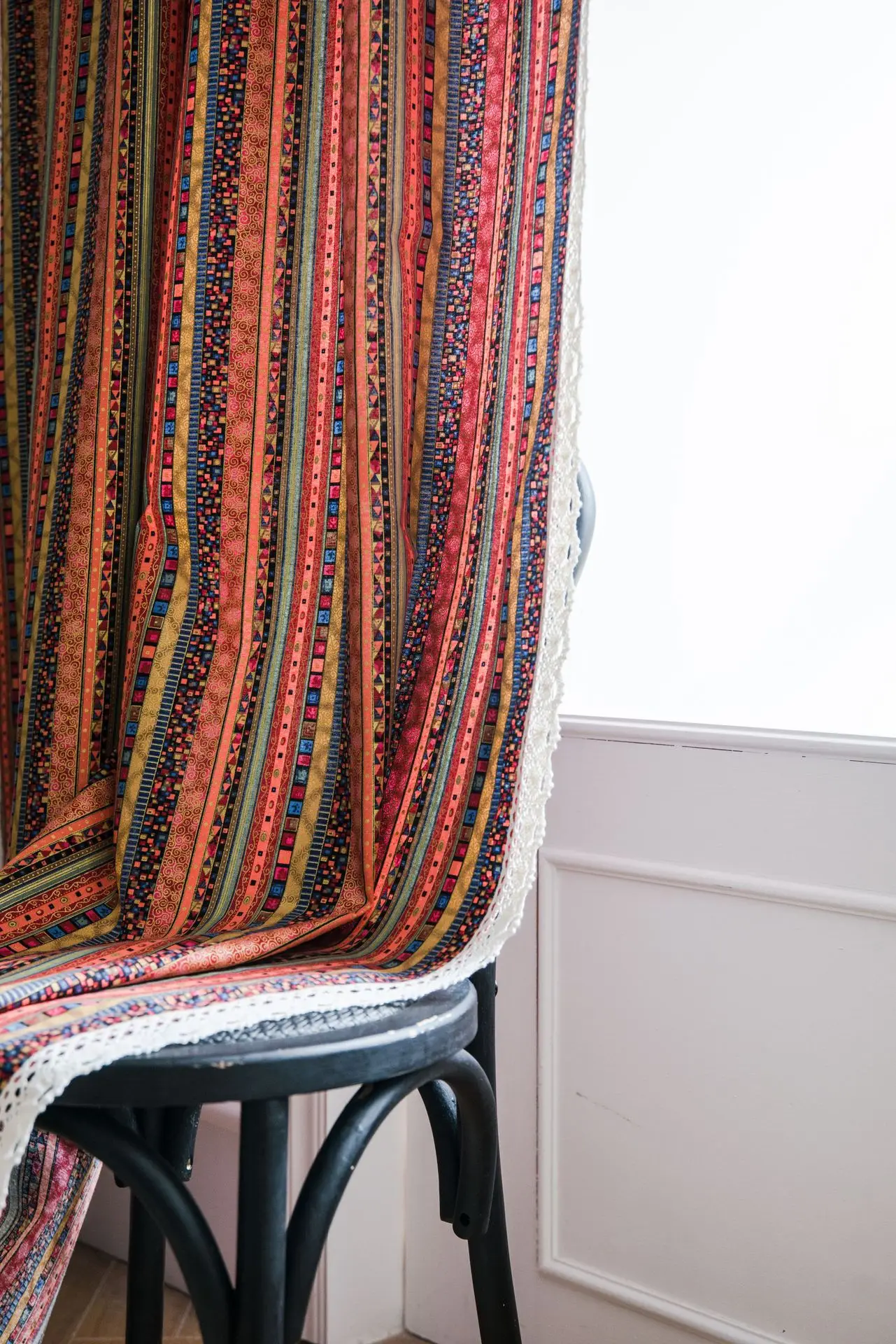 Цветные льняные занавески в богемном стиле, белые кружевные занавески для гостиной, спальни, кухни, оконные занавески, короткая красная полоска