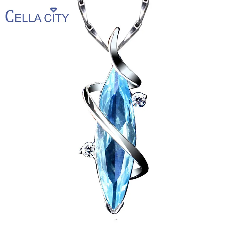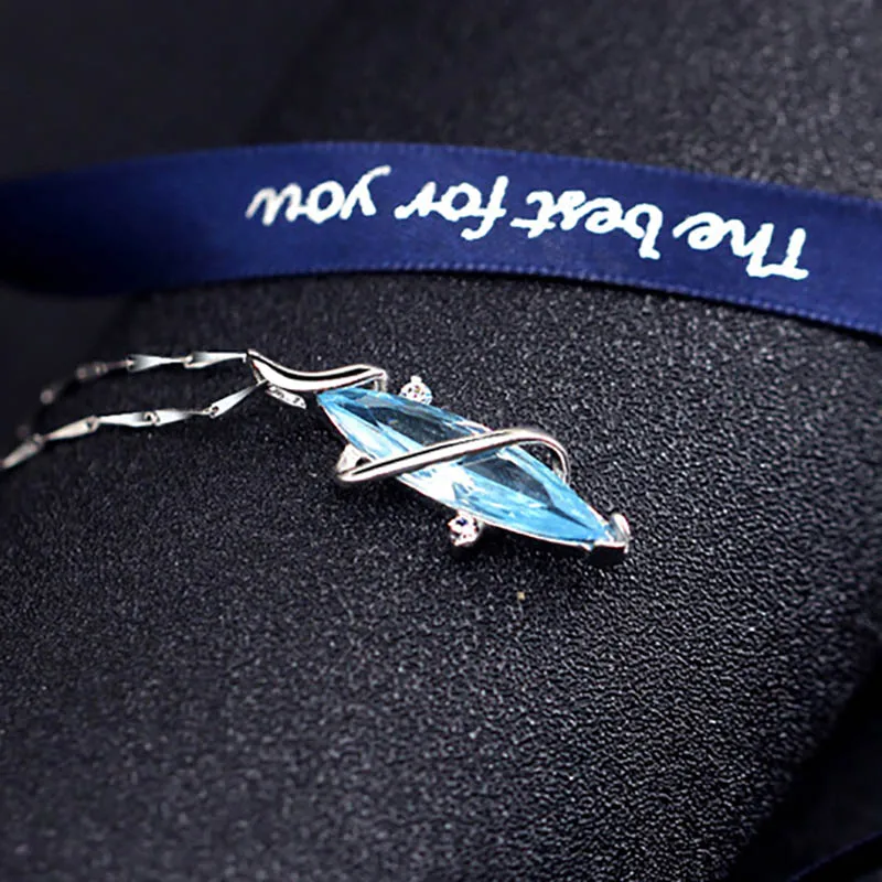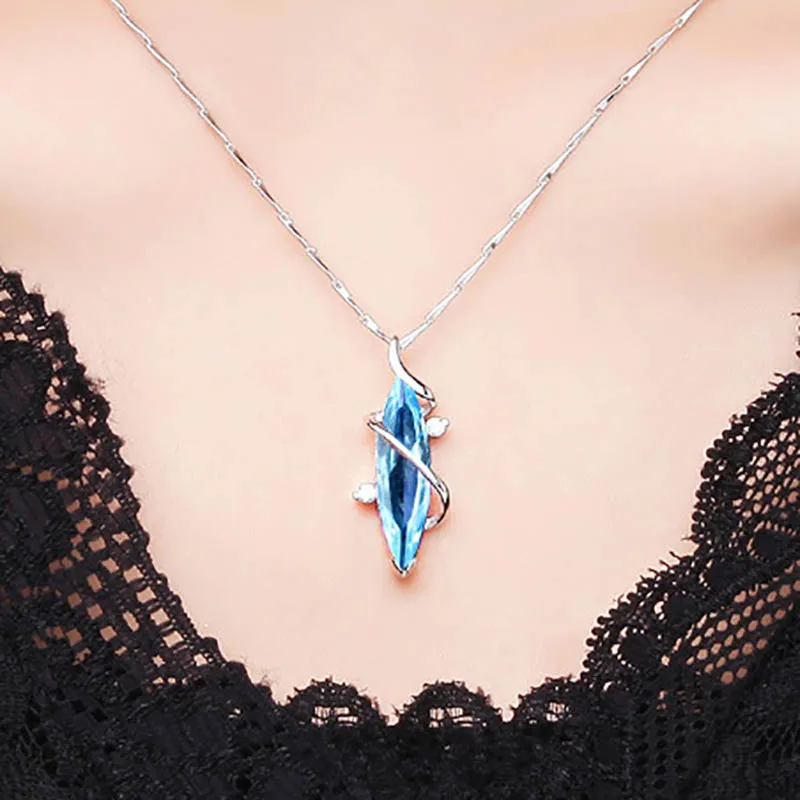 Серебро 925 пробы, женское ожерелье с аквамариновым кулоном, изящное ювелирное изделие с драгоценными камнями, женское украшение на шею в форме капли воды