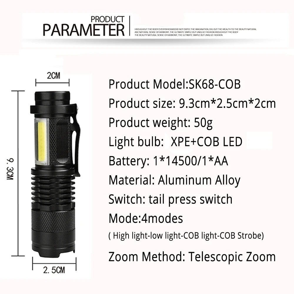 Мини светодиодный фонарик USB Перезаряжаемый 3 режима освещения водонепроницаемый фонарь телескопический зум стильный портативный костюм для ночного освещения