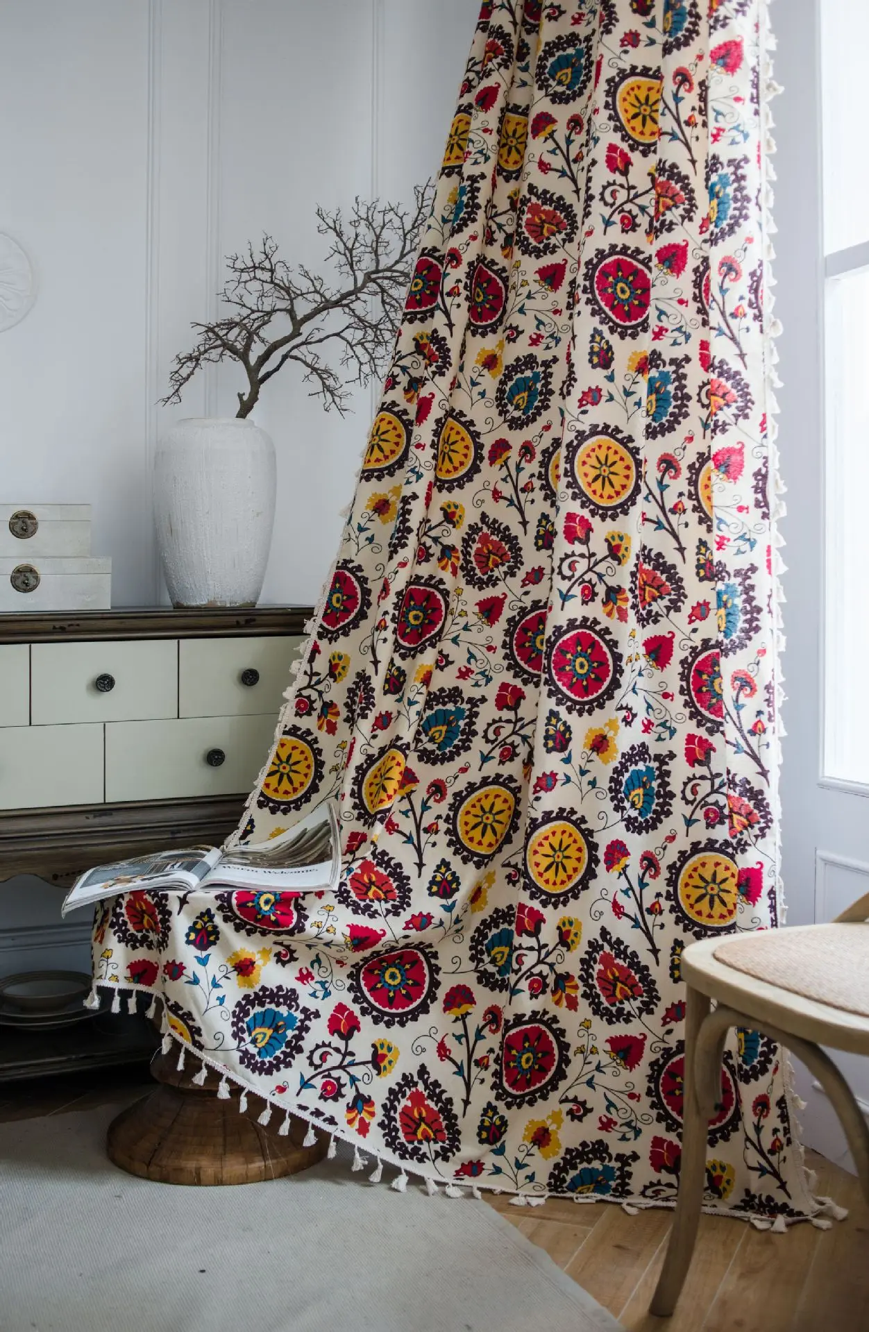 Занавеска с кисточками и принтом подсолнухов, богемный полузатемнит...