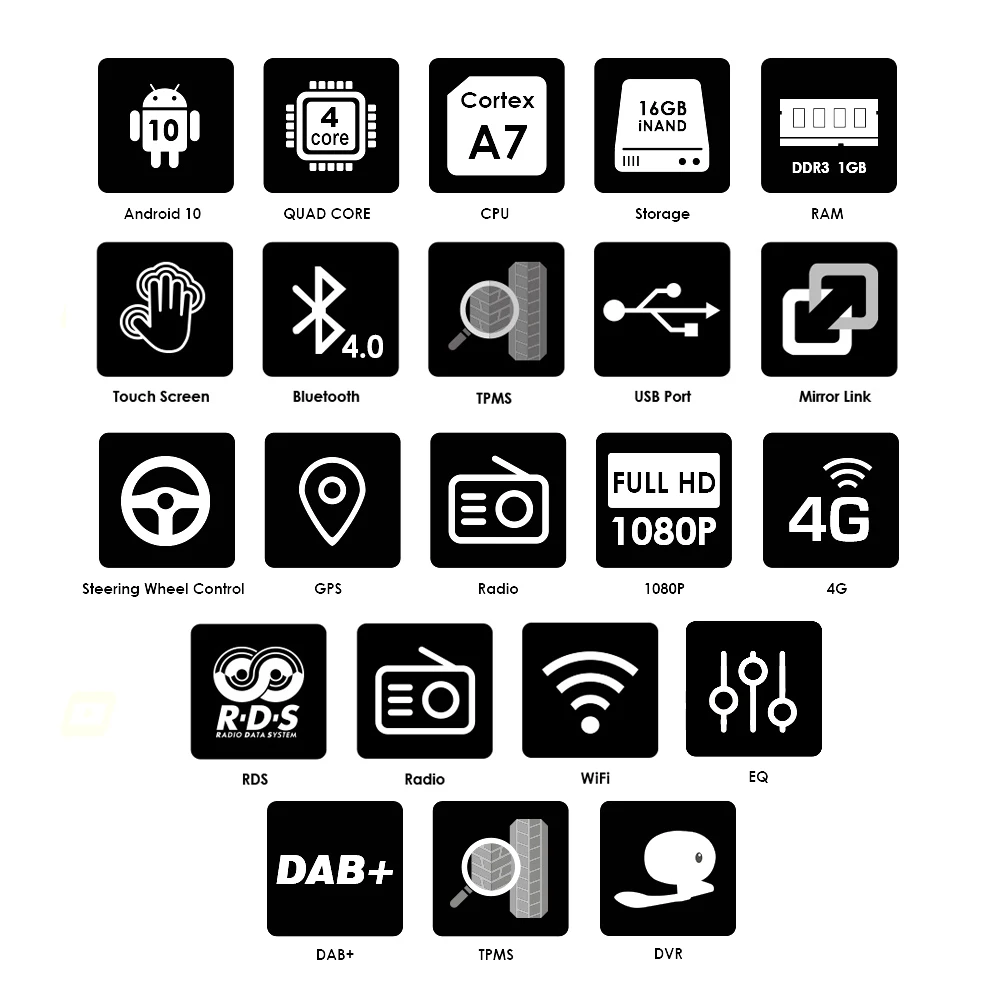 Четырехъядерный 1080P Android 10 Автомобильный мультимедийный радио...