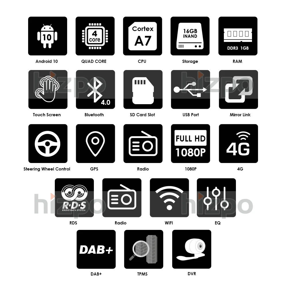 Hizpo автомобильный мультимедийный плеер Android 10 2 Din GPS Автор...