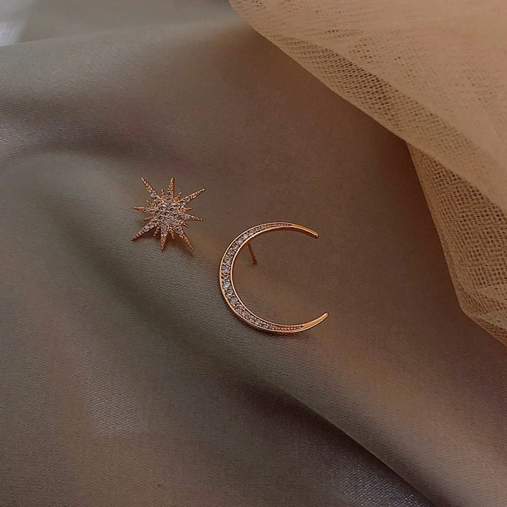 Корейские модные серьги со звездами и Луной для женщин, ассиметричн...