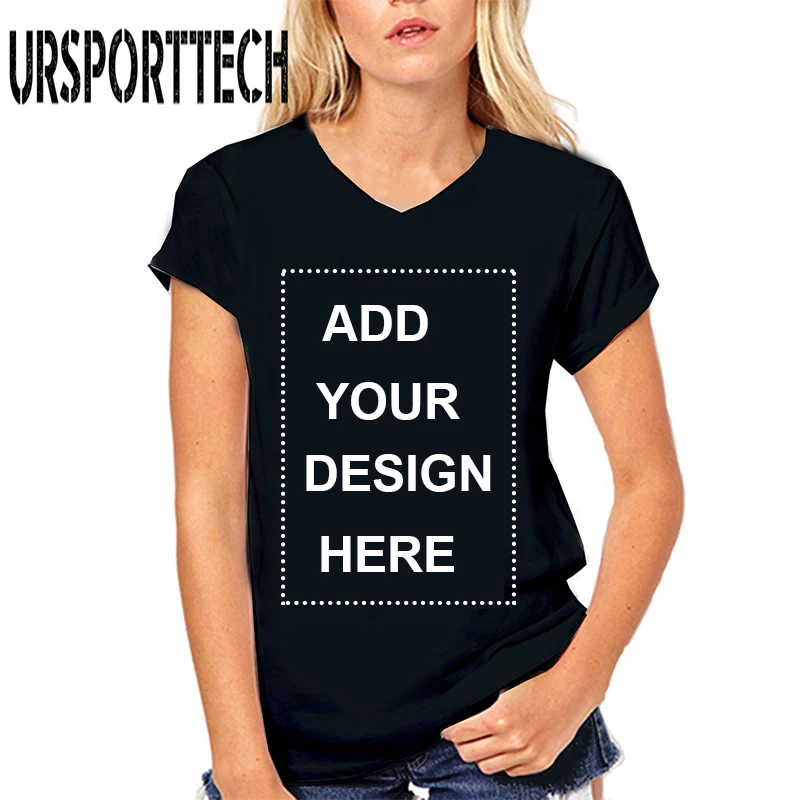 Футболка женская с принтом логотипа, дышащая хлопковая майка с V-образным вырезом, индивидуальный дизайн, большие размеры