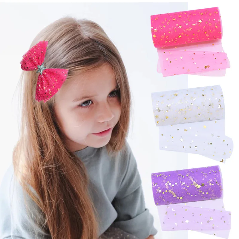 Красивый Блестящий тюль в рулонах, блестящая сетка со звездами, ручная работа, кружевная фатиновая ткань для юбки-пачки, сделай сам, Швейные аксессуары, украшение для свадебной вечеринки