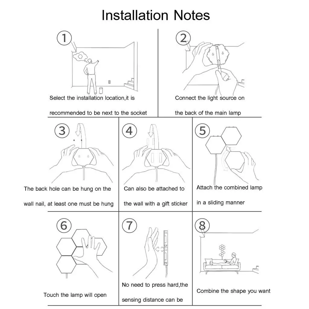Эта сотовая настенная лампа позволяет пользователю эффективно скользить там, где они хотят или нужен светильник, превратить стены в холст и использовать их руки в качестве кисти. Если есть проблема с определенной лампой, вам нужно только заменить лампу.