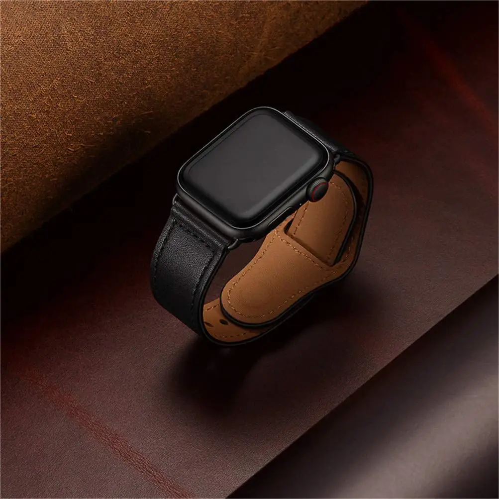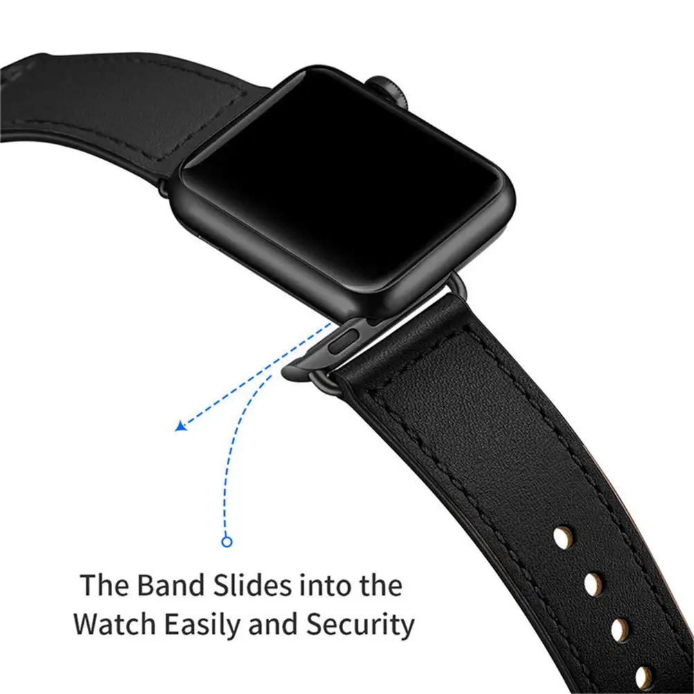 Ремешок кожаный для Apple Watch 5 4 44 мм 40 мм, черный кожаный браслет для iwatch 3 2 1 38 мм 42 мм, женский браслет
