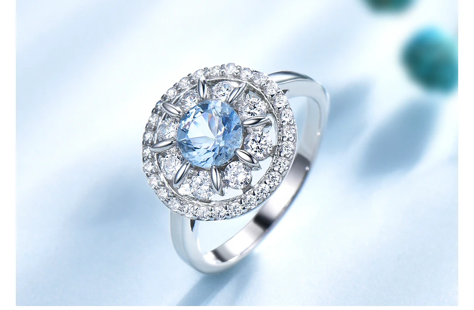 UMCHO роскошные кольца с аквамариновыми драгоценными камнями для же...