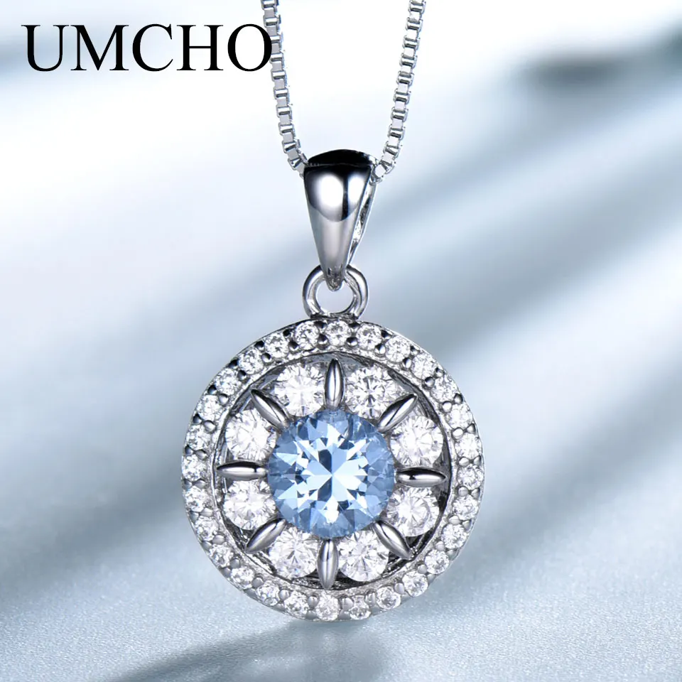 UMCHO Gemstone Nano Blue Подвески с топазом, ожерелья для женщин, б...