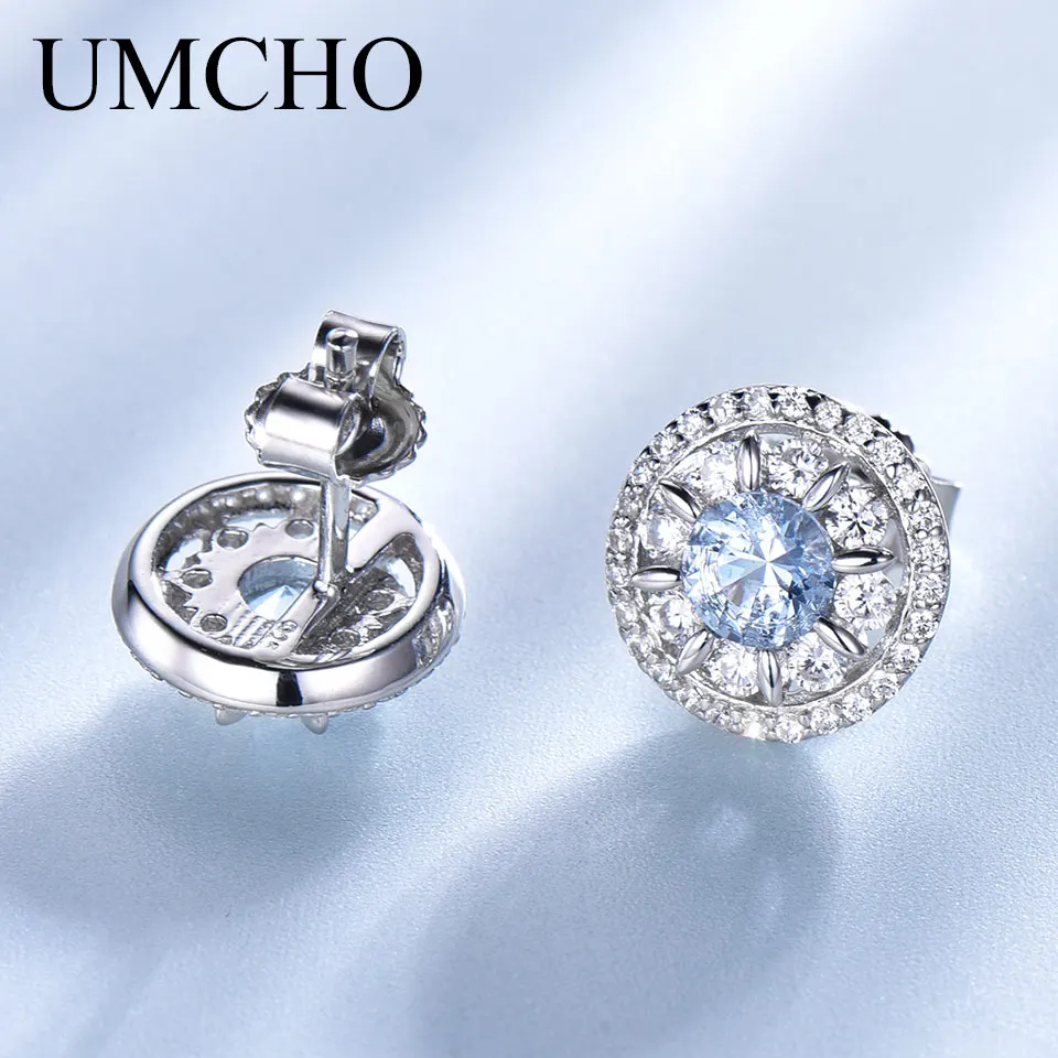 UMCHO 1.8CT натуральный Небесно-Голубой топаз ювелирные серьги c др...