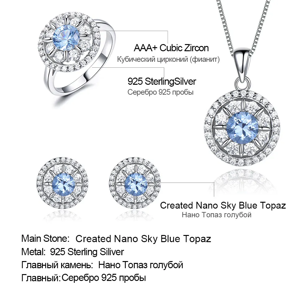 UMCHO 925 стерлингового серебра Nano Sky украшения с голубым топазо...