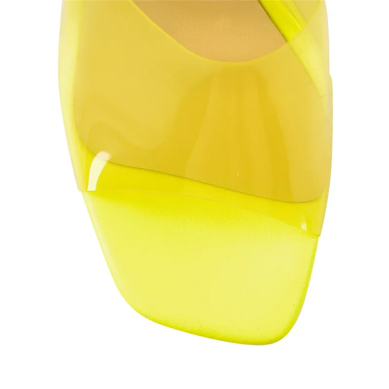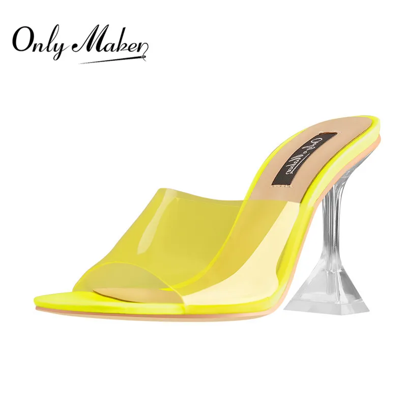 Шлепанцы Onlymaker с открытым носком, желтые прозрачные конические каблуки, туфли без задника, каблук с шипами, сандалии из ПВХ для лета, размеры 5-US15