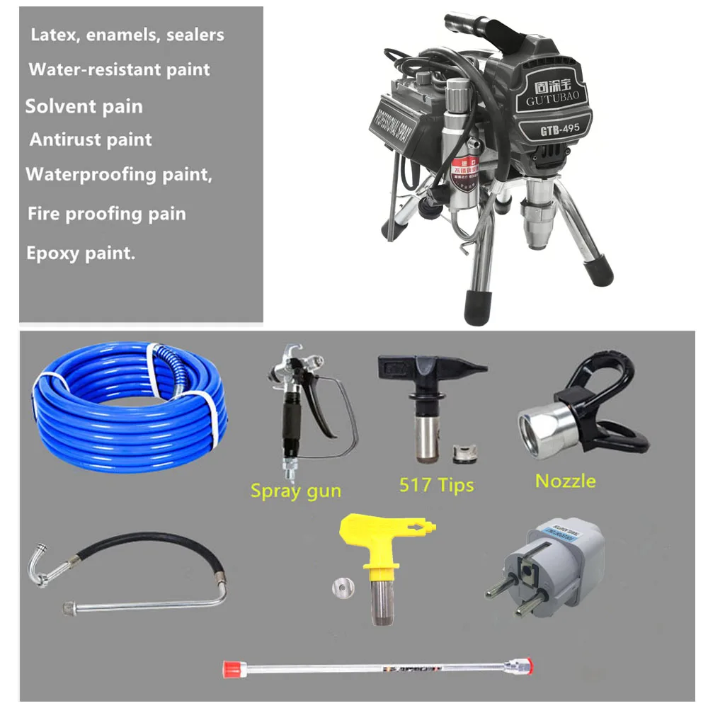 Профессиональный электрический безвоздушный Краскораспылитель 2500 Вт 2.6л/MinPISTON краска ing машина 495 с бесщеточным двигателем Заводская Продажа