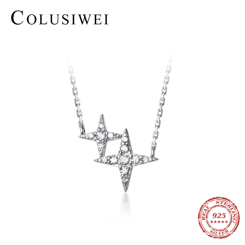 Colusiwei яркие звезды металлические подвесные ожерелья для женщин; Ботильоны с форме плетённого кольца для свадьбы, помолвки 925 стерлингового серебра ювелирные изделия