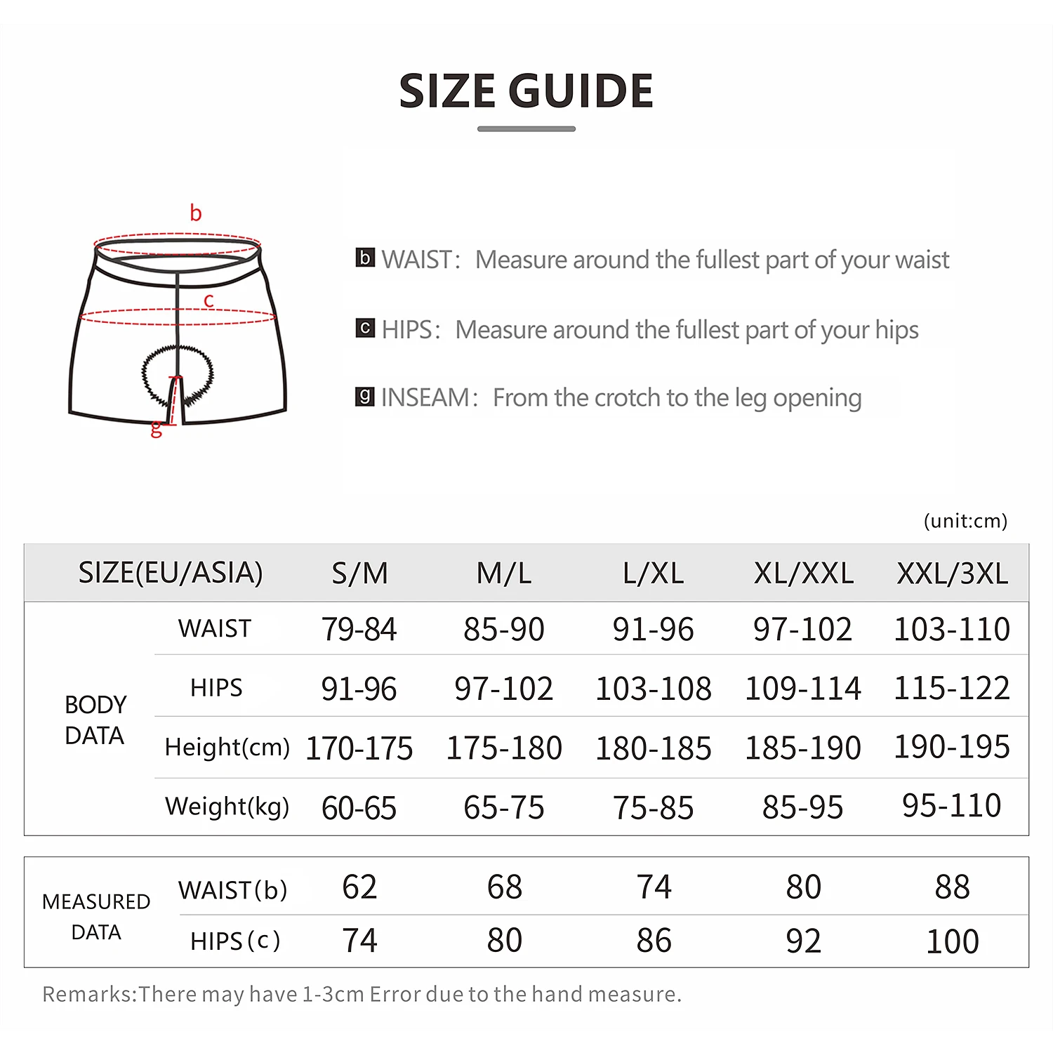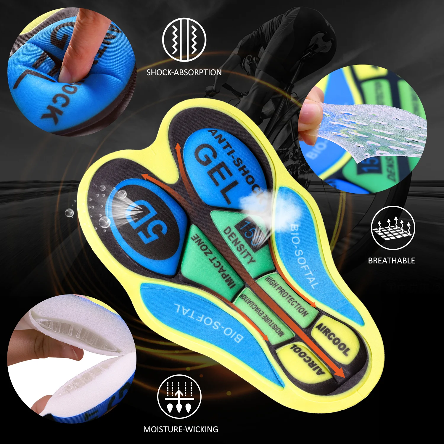 Велосипедные шорты дышащие, легкие, влагоотводящие и удобные, идеальный выбор для тех, кто любит езду на велосипеде. Особенности: Высококачественный нейлон и спандекс, легкий и дышащий материал. Влагоотводящая ткань быстро сохнет, чтобы сохранить прохладу и сухость. Эластичная ткань делает шорты идеально подходящими для вашей изгибы и обеспечивает отличную поддержку Ваших бедер и ног. Эластичный широкий пояс обеспечивает комфортное и плотное прилегание. Плоская строчка предотвращает натирание кожи. 5D Толстая Гелевая подушка помогает поглощать шок и облегчает боль в бедрах после долгой езды. Характеристики: Материал: нейлон и спандекс Цвет подушки: синий и желтый/синий и красный (по желанию) Размер (ЕС): S / M / L / XL / XXL (опционально) Посылка: 1 * велосипедные шорты
