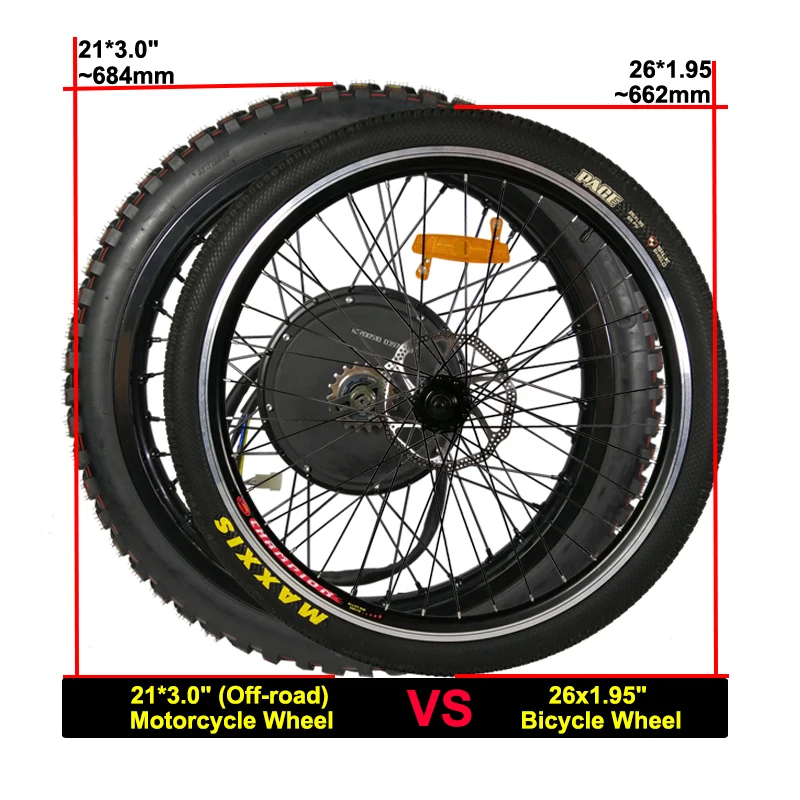 Размер колес мотоцикла 21 дюйм такой же, как и колесо велосипеда 26x3,0 дюйма.