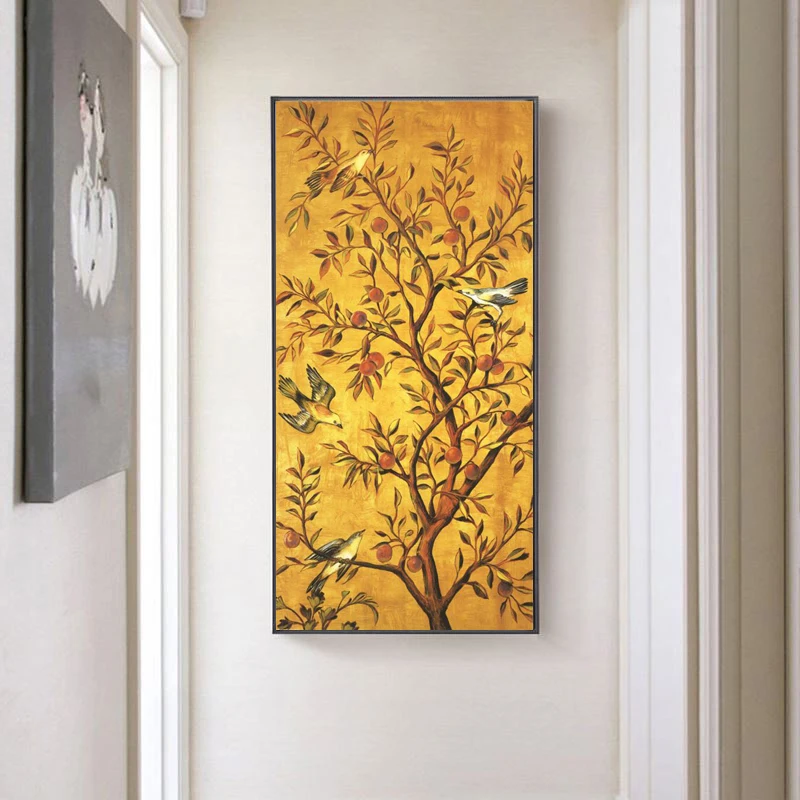 Традиционные плакаты на холсте с изображением дерева удачи и картина маслом c изображением птиц, настенные художественные картины для гостиной