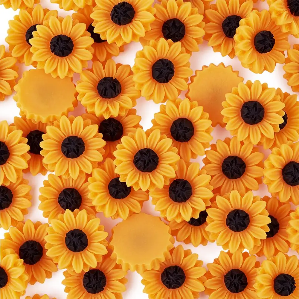 40-50 шт. кабошоны из смолы, Подсолнухи, плоская смола для сережек, ювелирных изделий сделай сам, аппликация для украшений, скрапбукинга