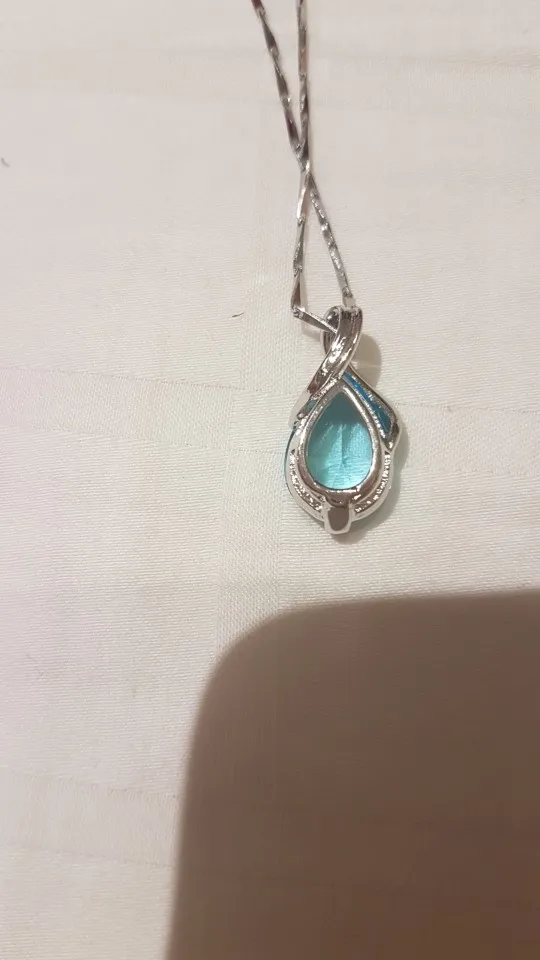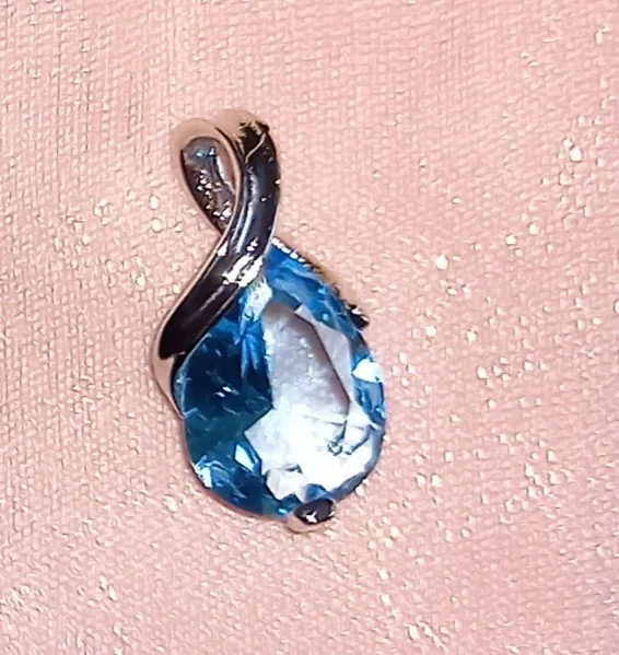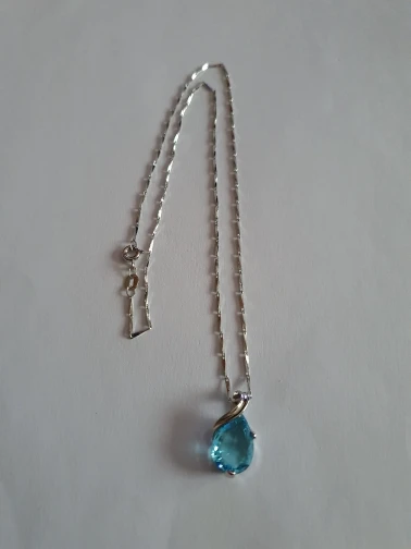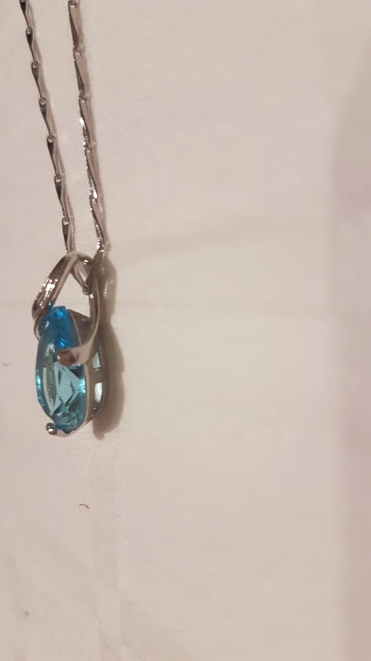 цепочка прям невесомая и малюска. А вот цвет подвески очень близко к натуральному голубому топазу.