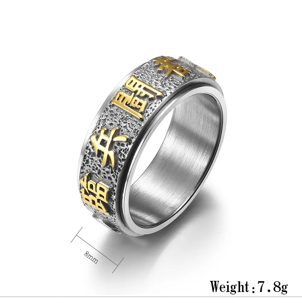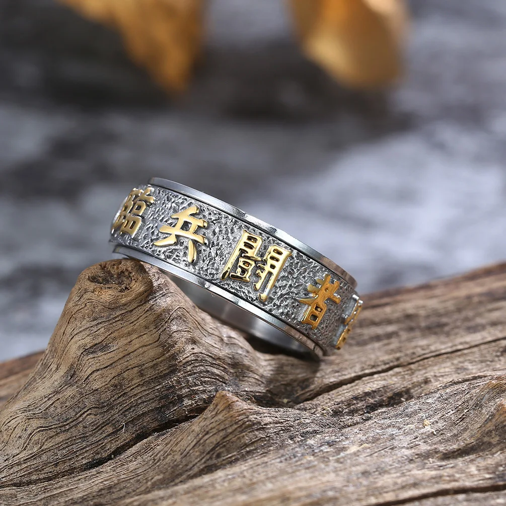 Ретро 9-слов Будды кольцо с мантрой для Для мужчин даосизм телохранитель Lucky Нержавеющая сталь кольца Винтаж китайское мужское ювелирное изделие