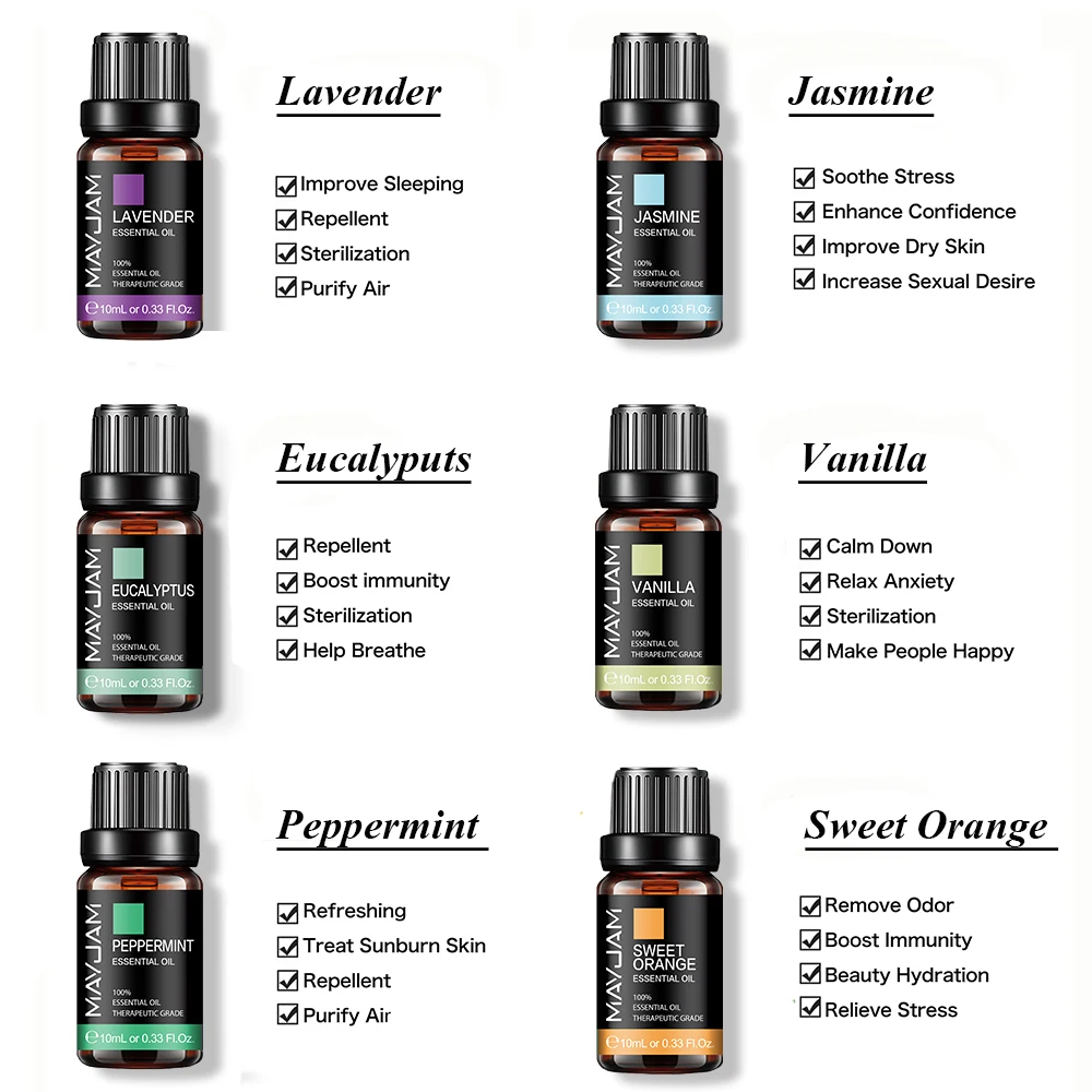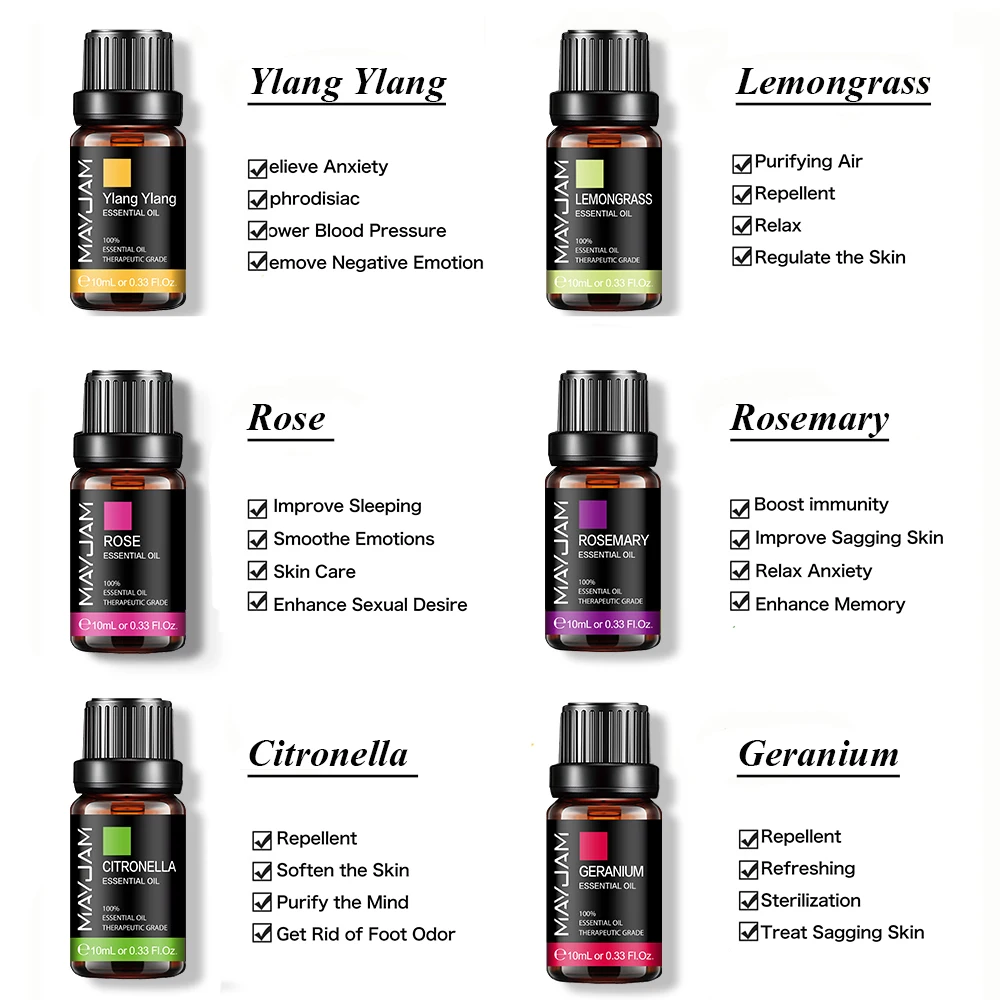 MAYJAM 10 мл чистый диффузор эфирного масла чайного дерева иланг-иланг ваниль Лаванда Лемонграсс Цитронелла Герань Лавандовое розовое масло