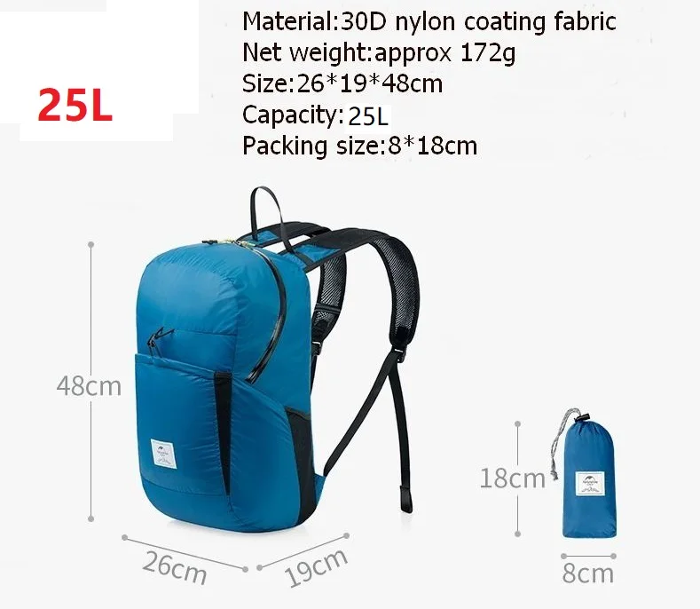 Naturehike 18L 25L легкий портативный складной рюкзак, водонепроницаемый рюкзак, складная сумка для мужчин и женщин, для путешествий, пеших прогулок