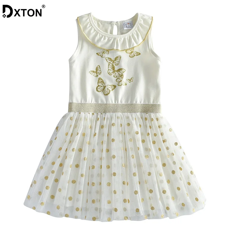 DXTON 2020 Летнее Детское платье для девочек, платье принцессы без рукавов с бабочками для девочек, Лоскутная детская одежда, платье-пачка для девочек, Vestidos