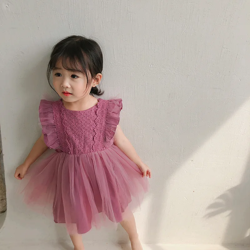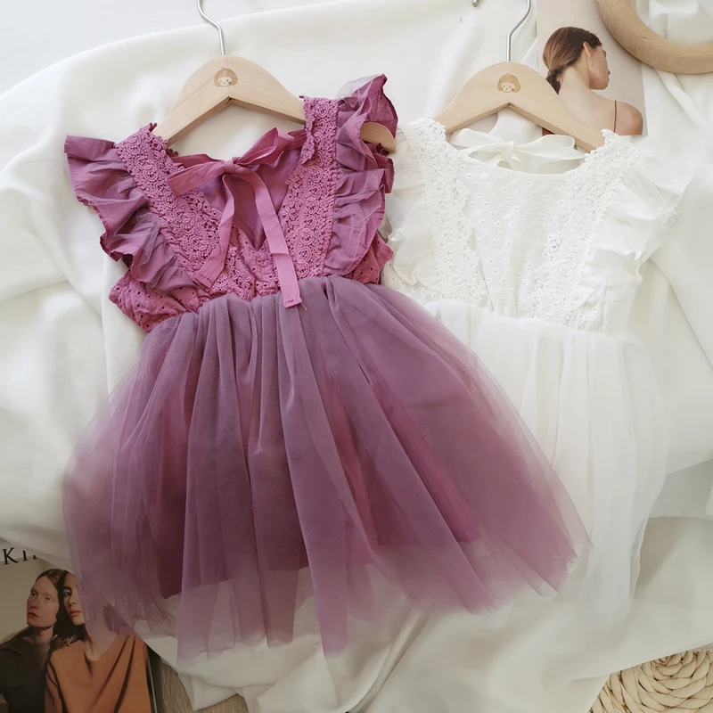 Детское шифоновое платье, сиреневое, белое, фатиновое платье для девочек, на лето, 2022