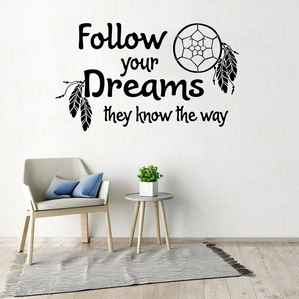 Вдохновляющие цитаты, виниловые наклейки на стену, Ловец снов Follow Your Dreams, для гостиной, спальни, съемные буквы, домашний декор WL1212