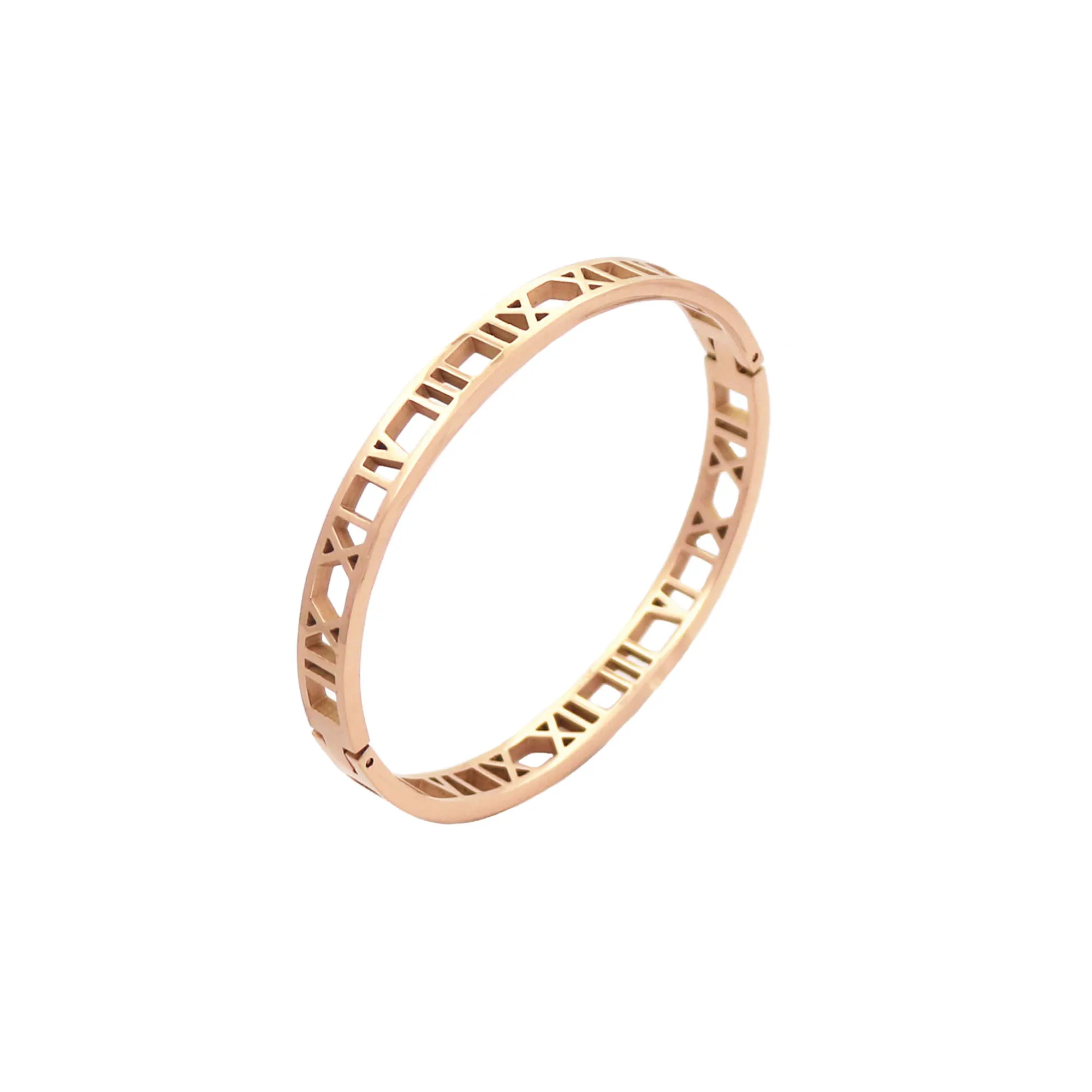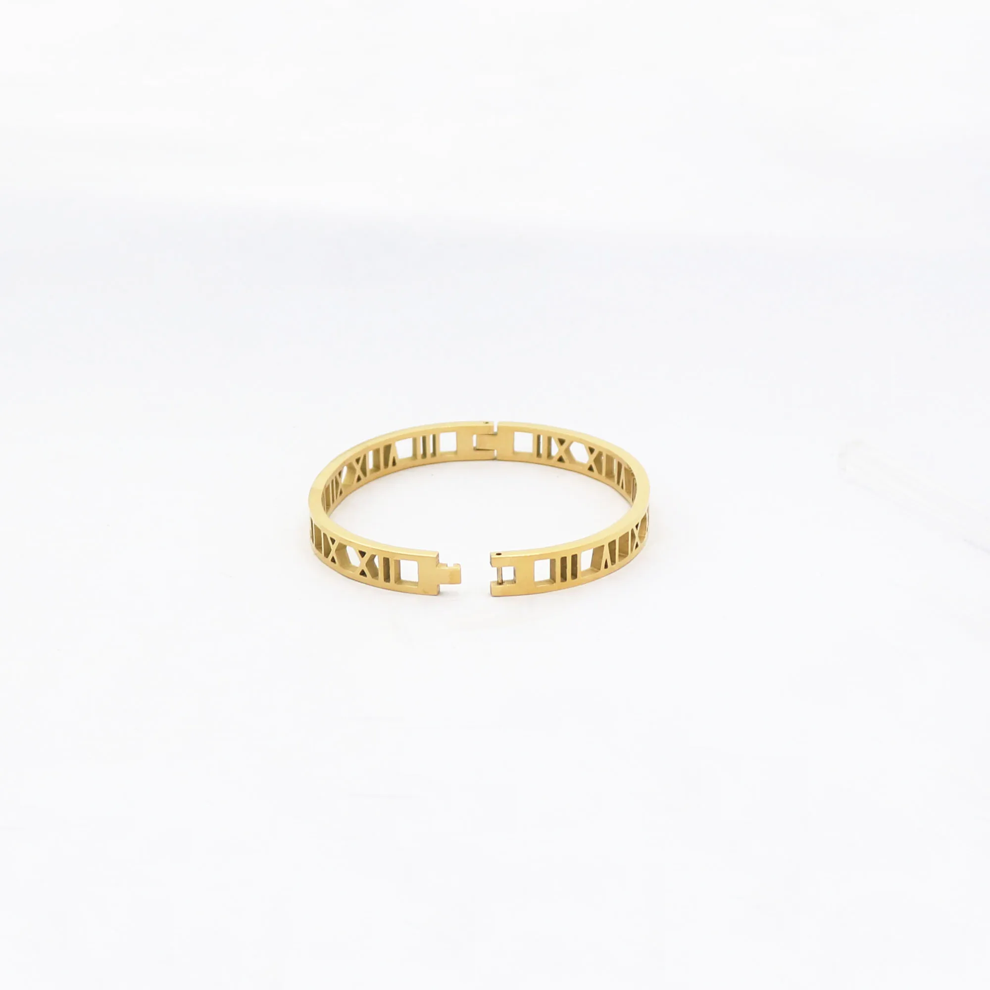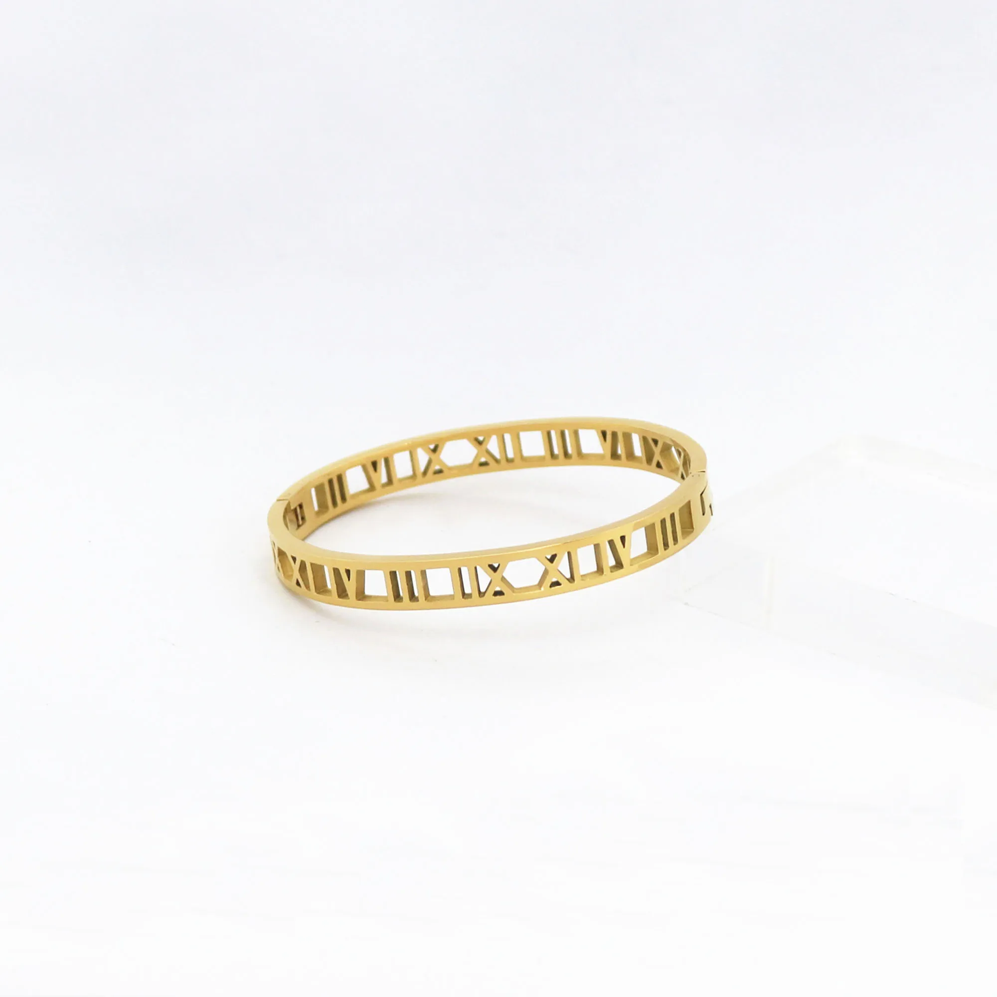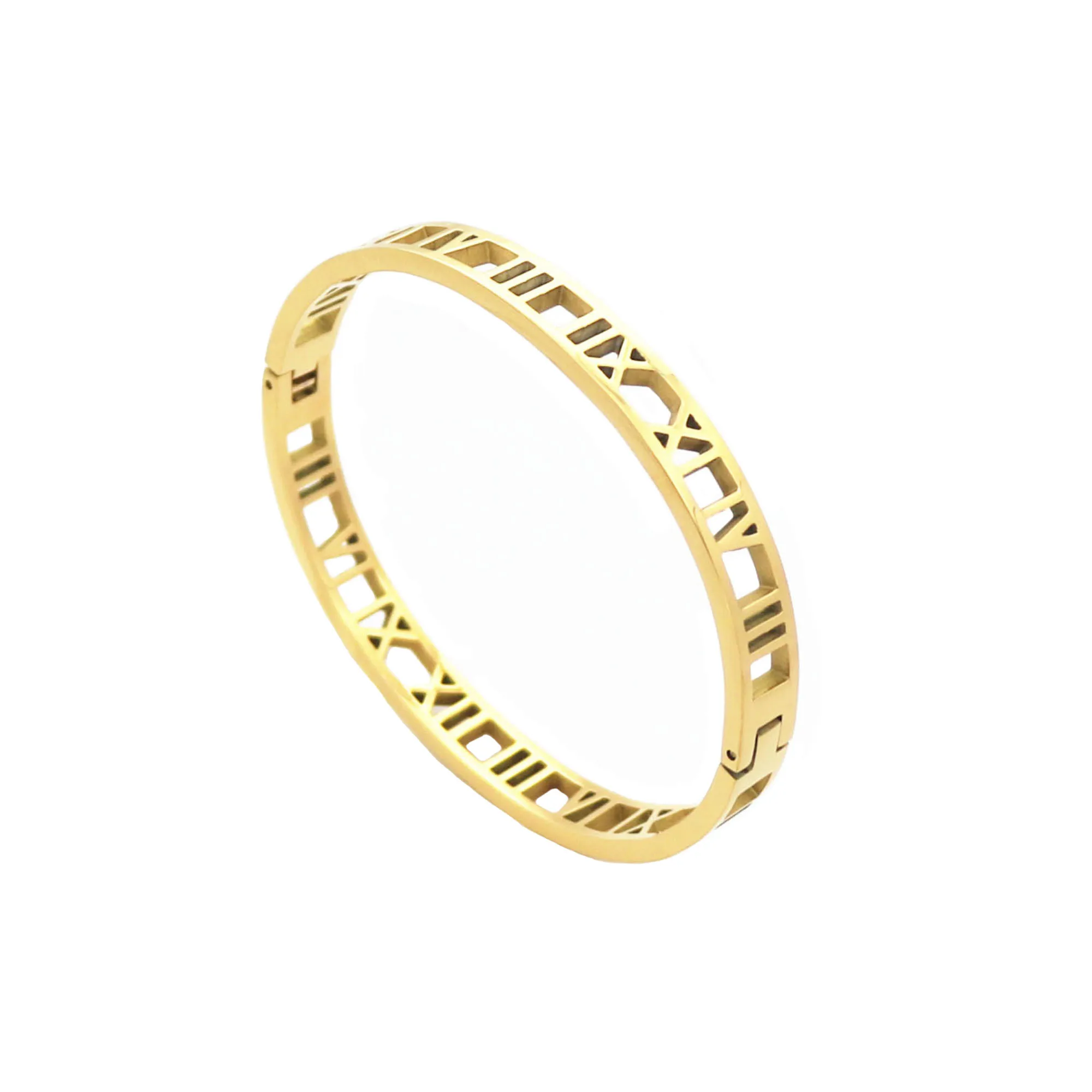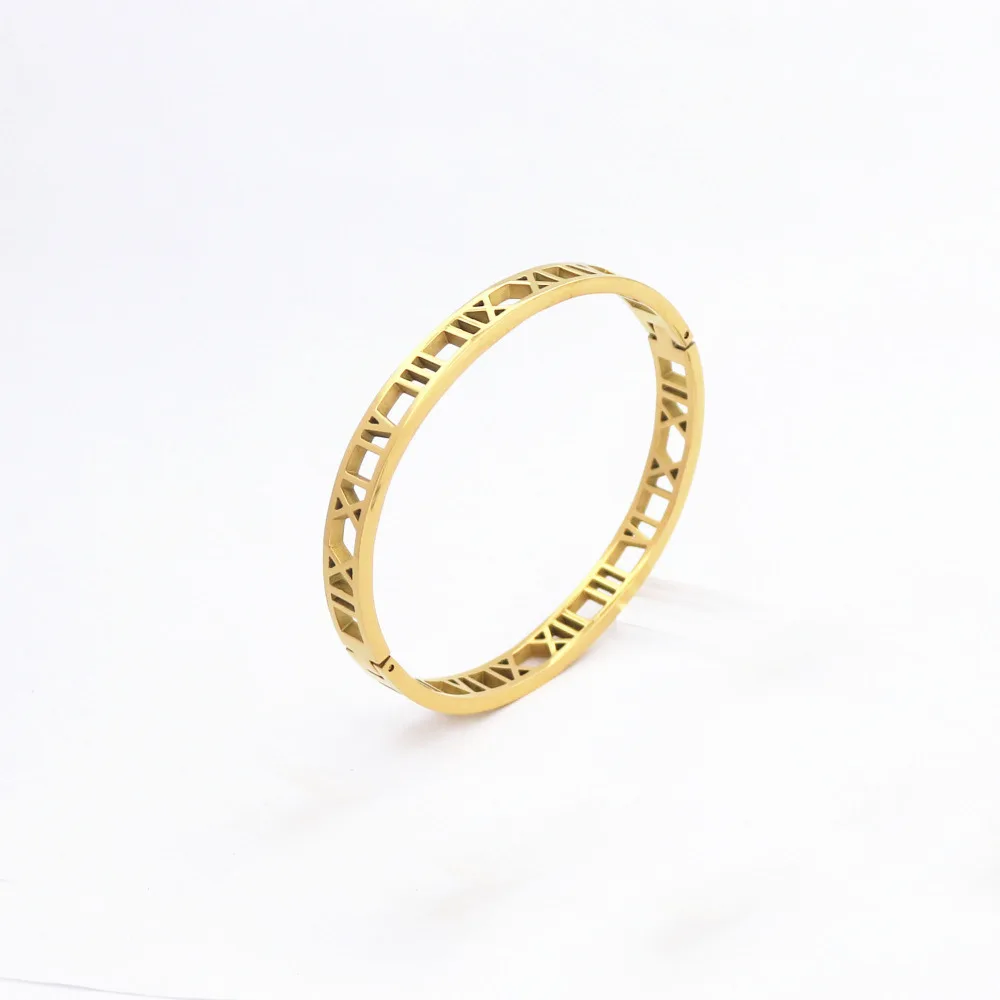 Титановая Сталь Браслет 2021 в римском стиле ювелирные изделия с цифрами желто-Золотой-Цвет полый браслет для женщин