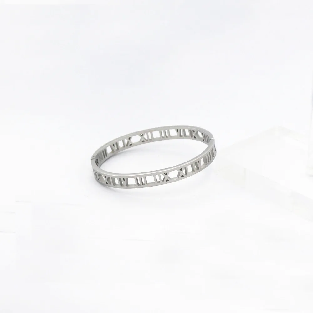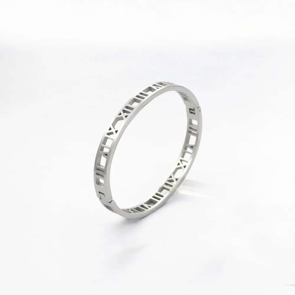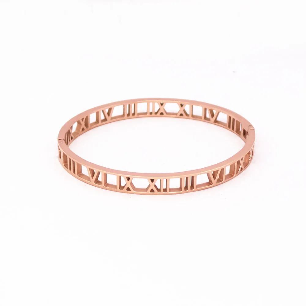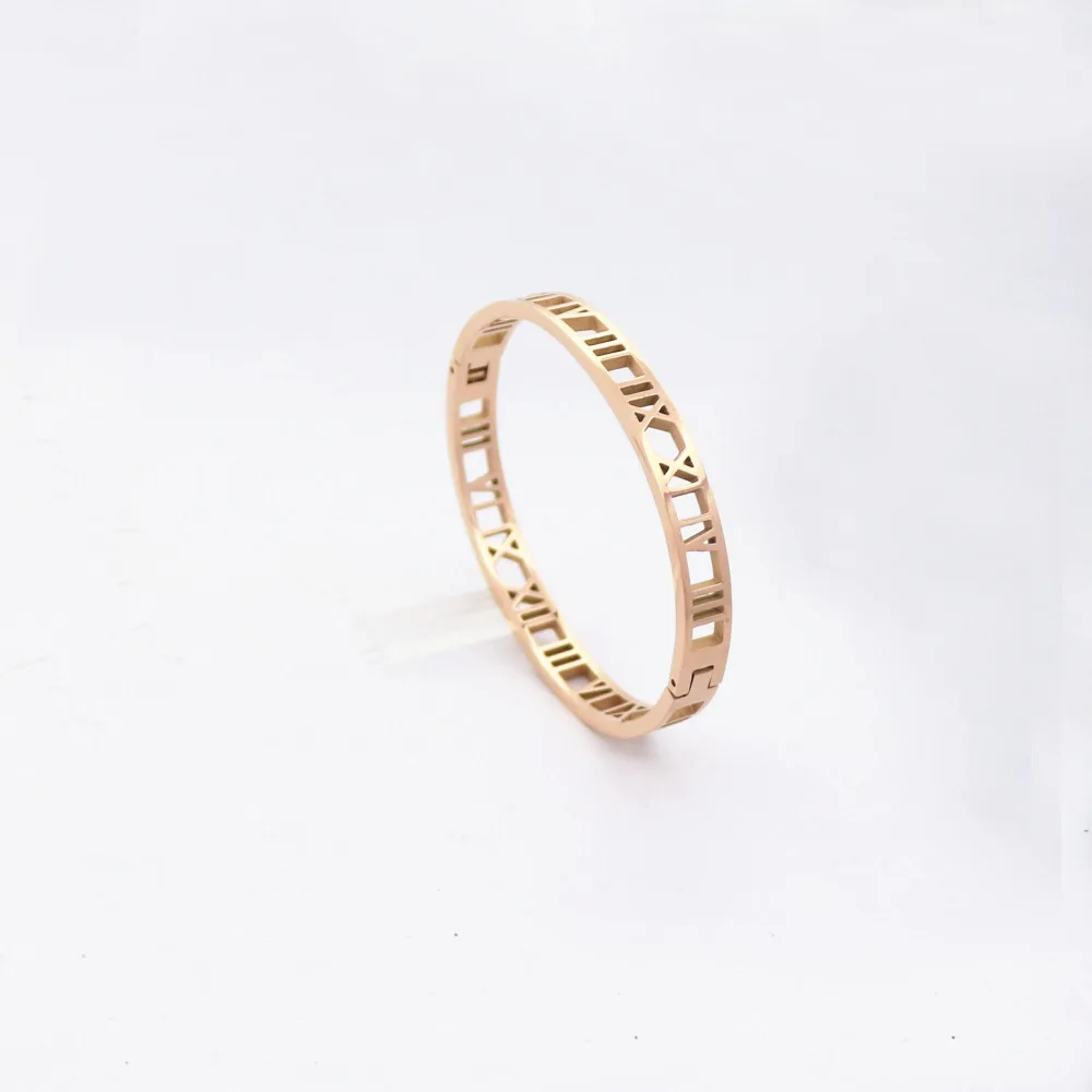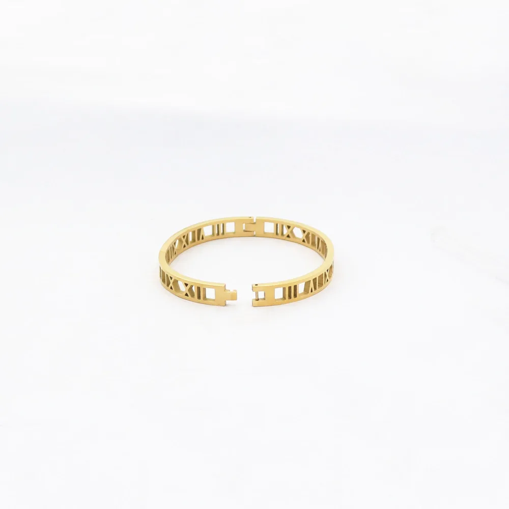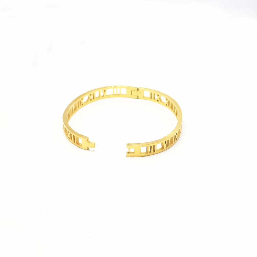 Титановая Сталь Браслет 2021 в римском стиле ювелирные изделия с цифрами желто-Золотой-Цвет полый браслет для женщин