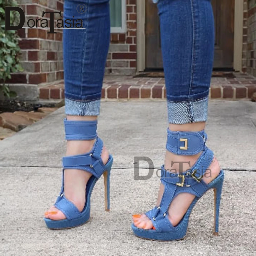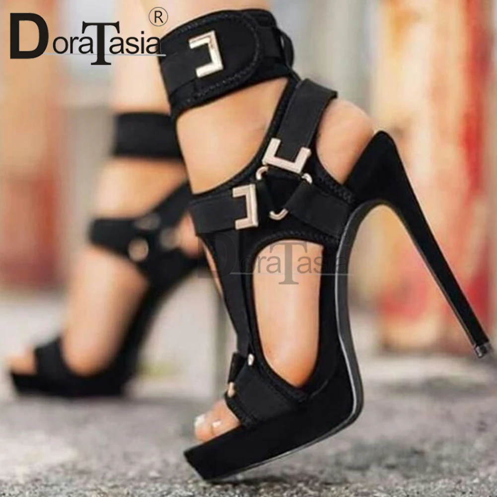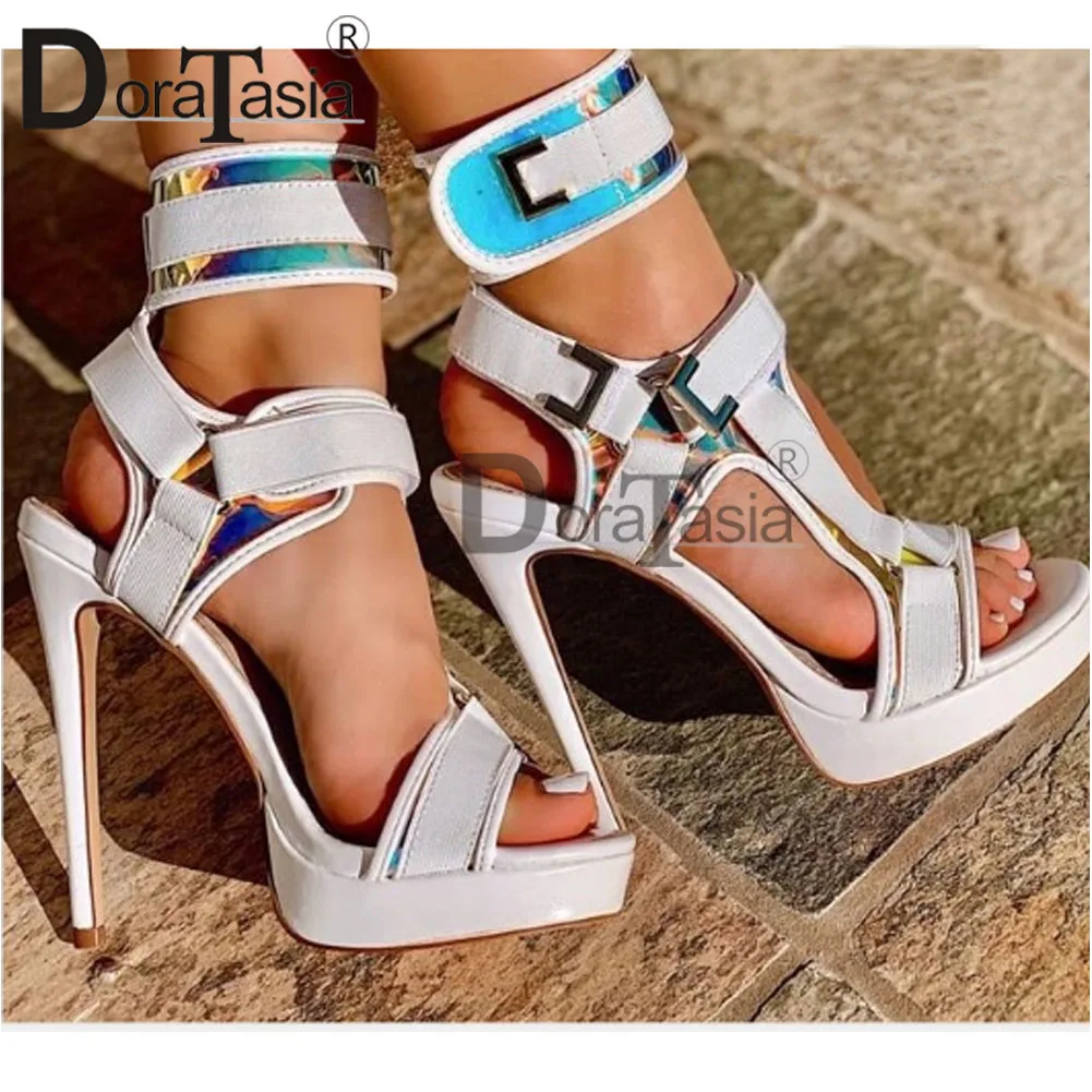 Женские босоножки-гладиаторы DORATASIA, туфли на тонком высоком каблуке, большие размеры 34-43, летние сандалии на платформе