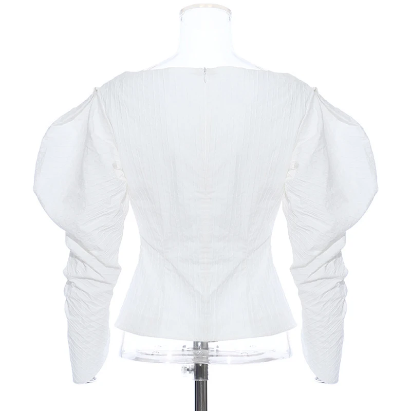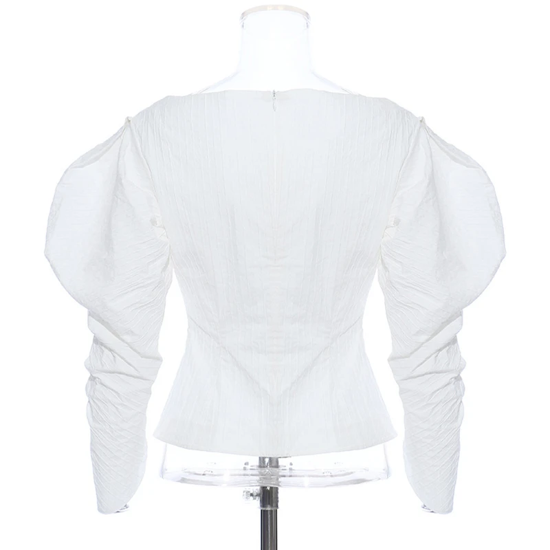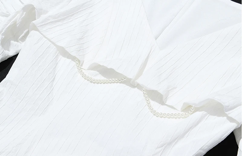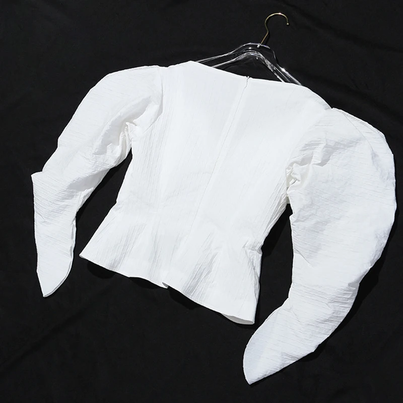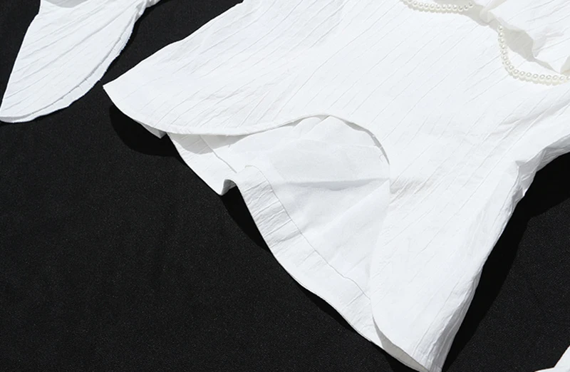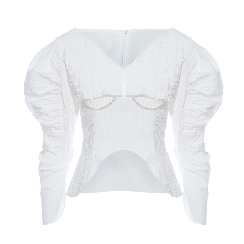 Женская блузка с буффами twotwin2, повседневная Асимметричная блузка с v-образным вырезом и длинными рукавами, расшитая бисером, в уличном стиле