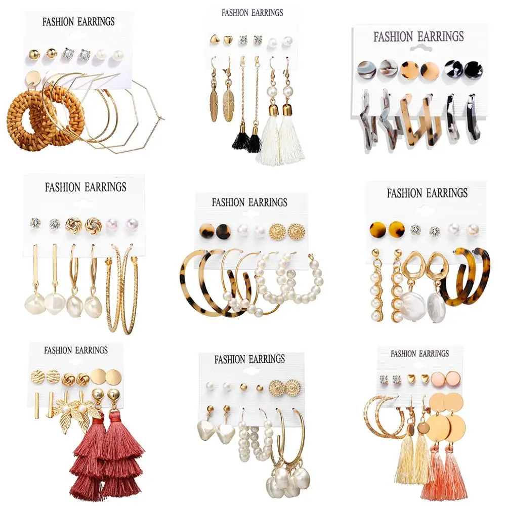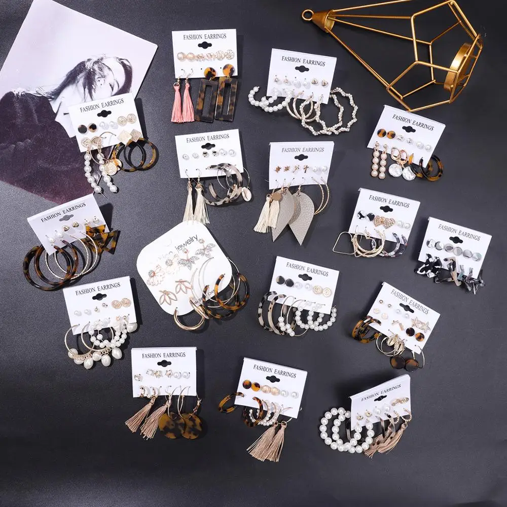 Набор женских акриловых серег, 6 пар, с кисточками, богемные, серьга геометрической формы